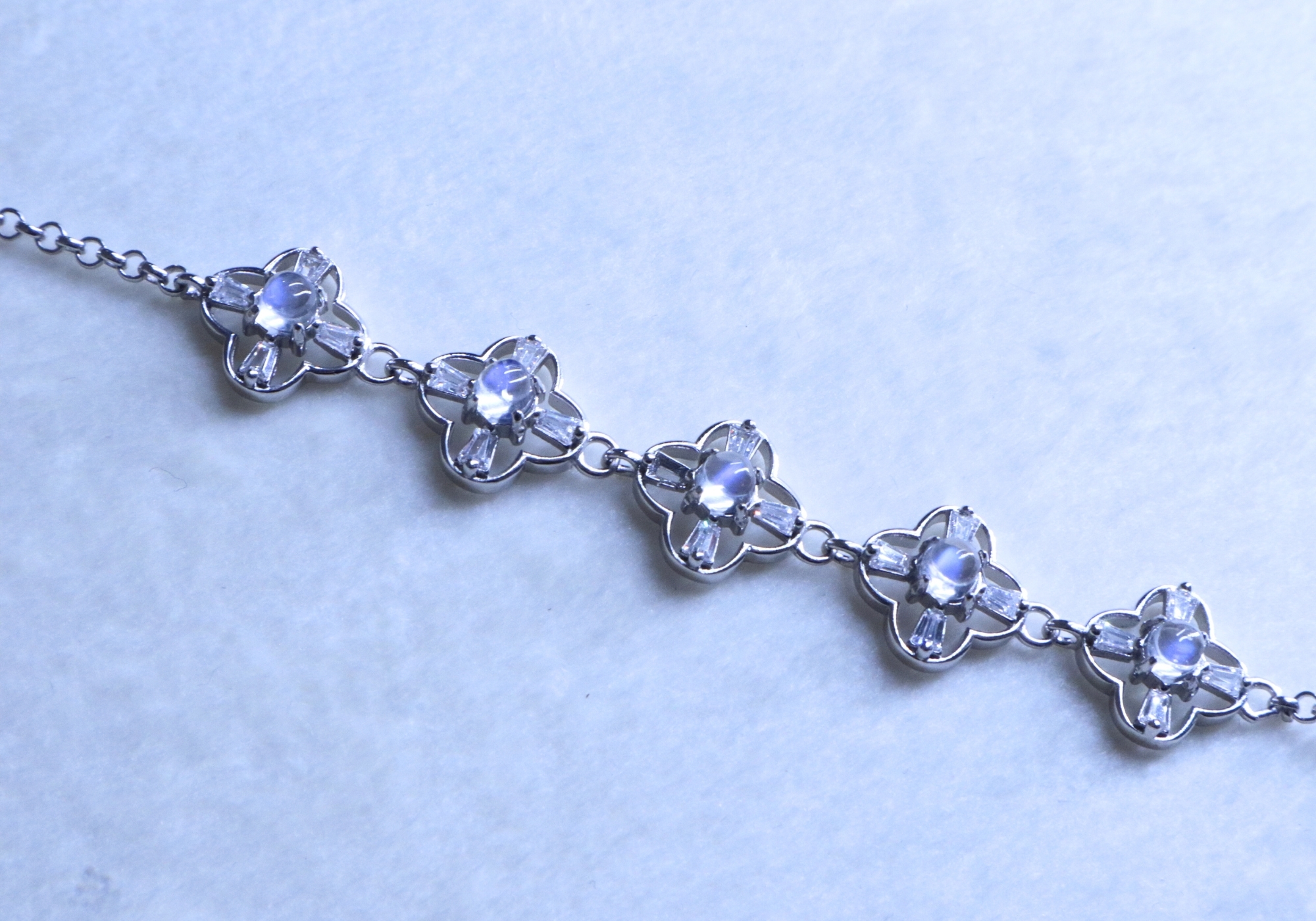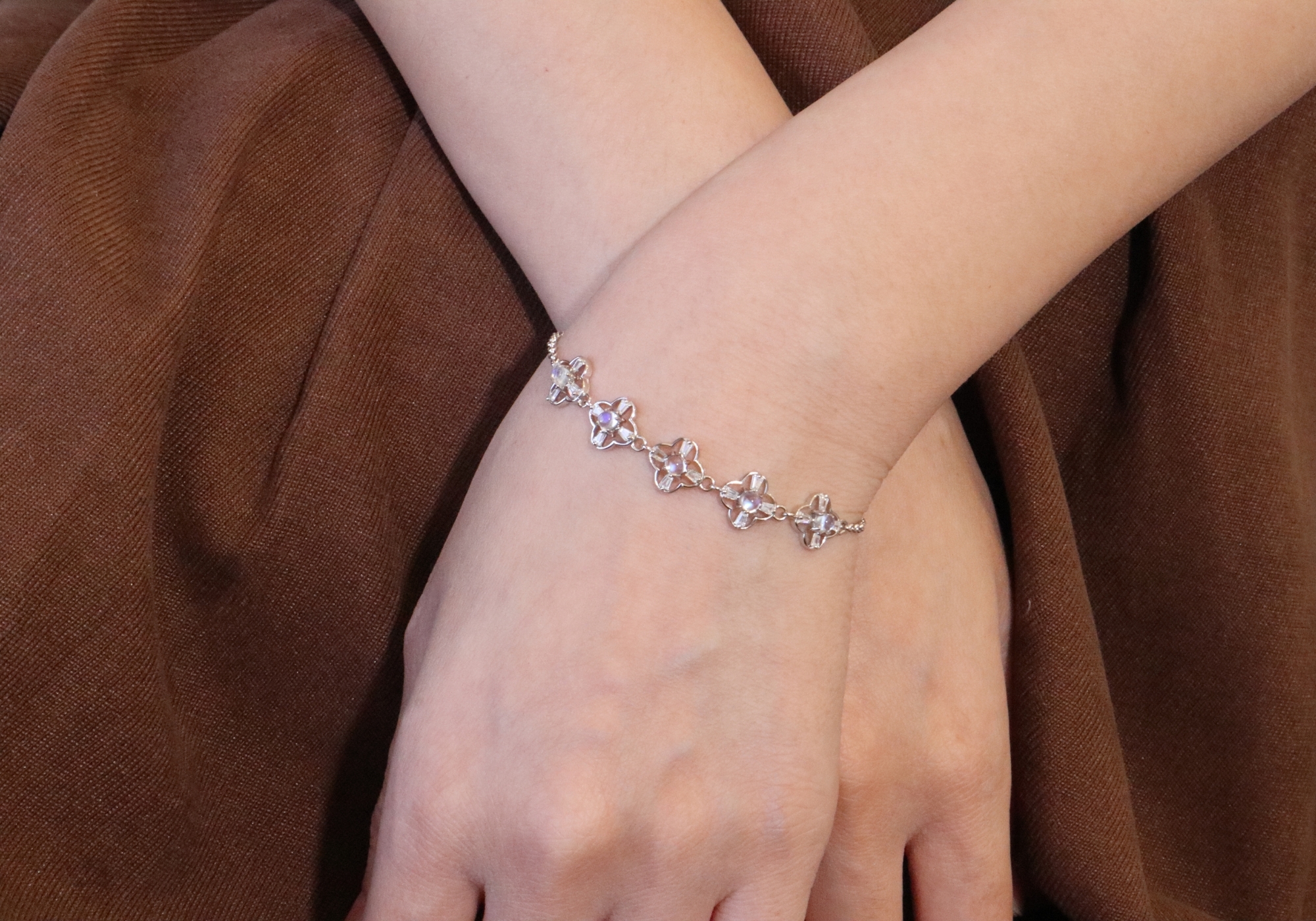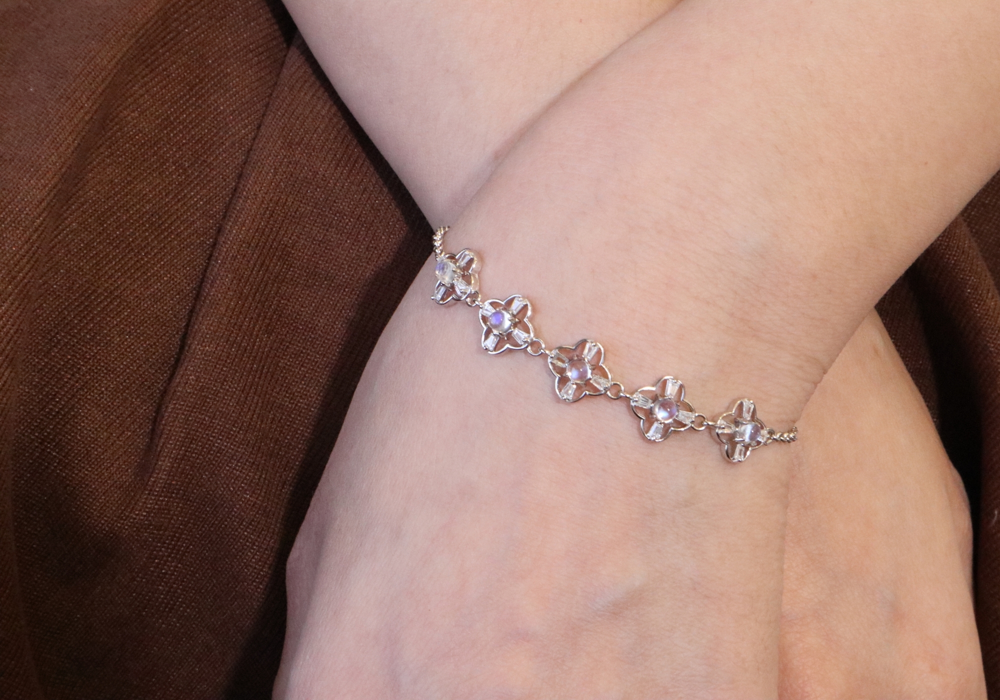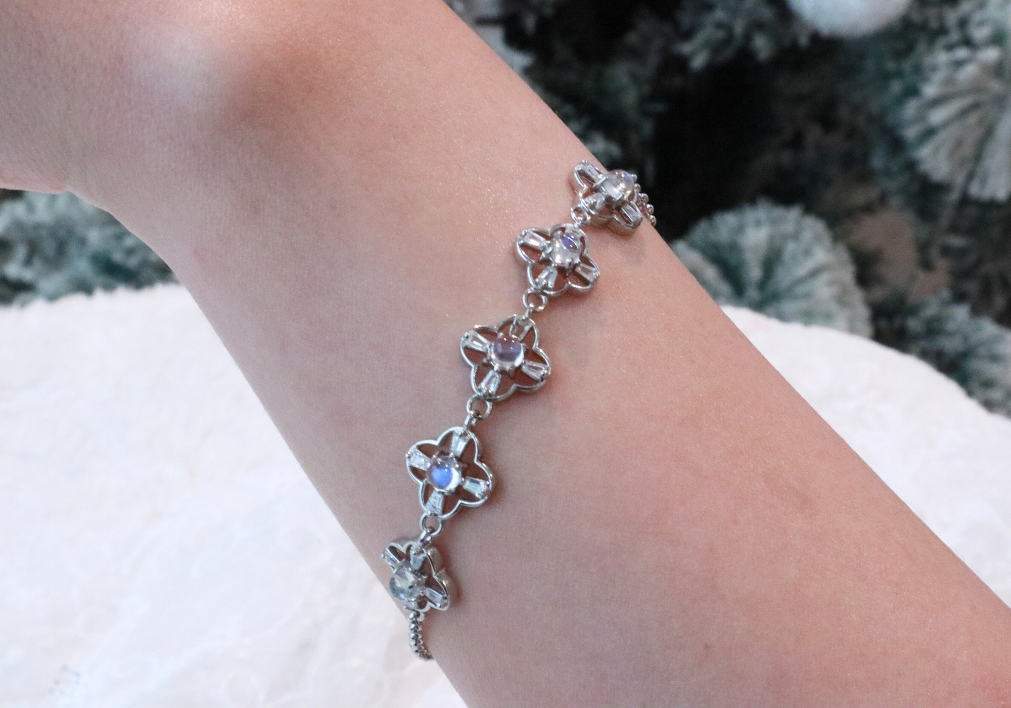 【輕珠寶・限定孤品】幸運花串 藍光月光石 純銀手鏈