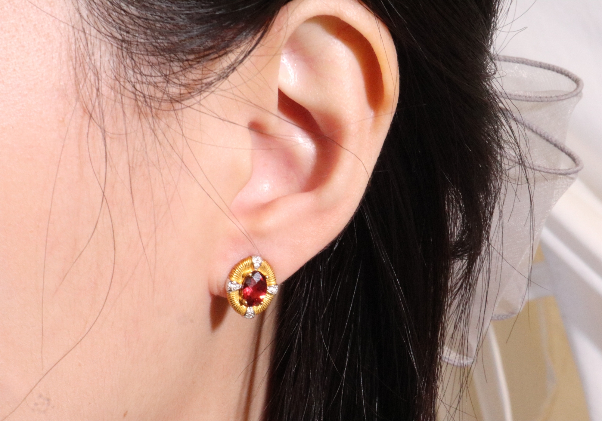 主要材質:純銀 (鍍18K金)、紫紅石榴石