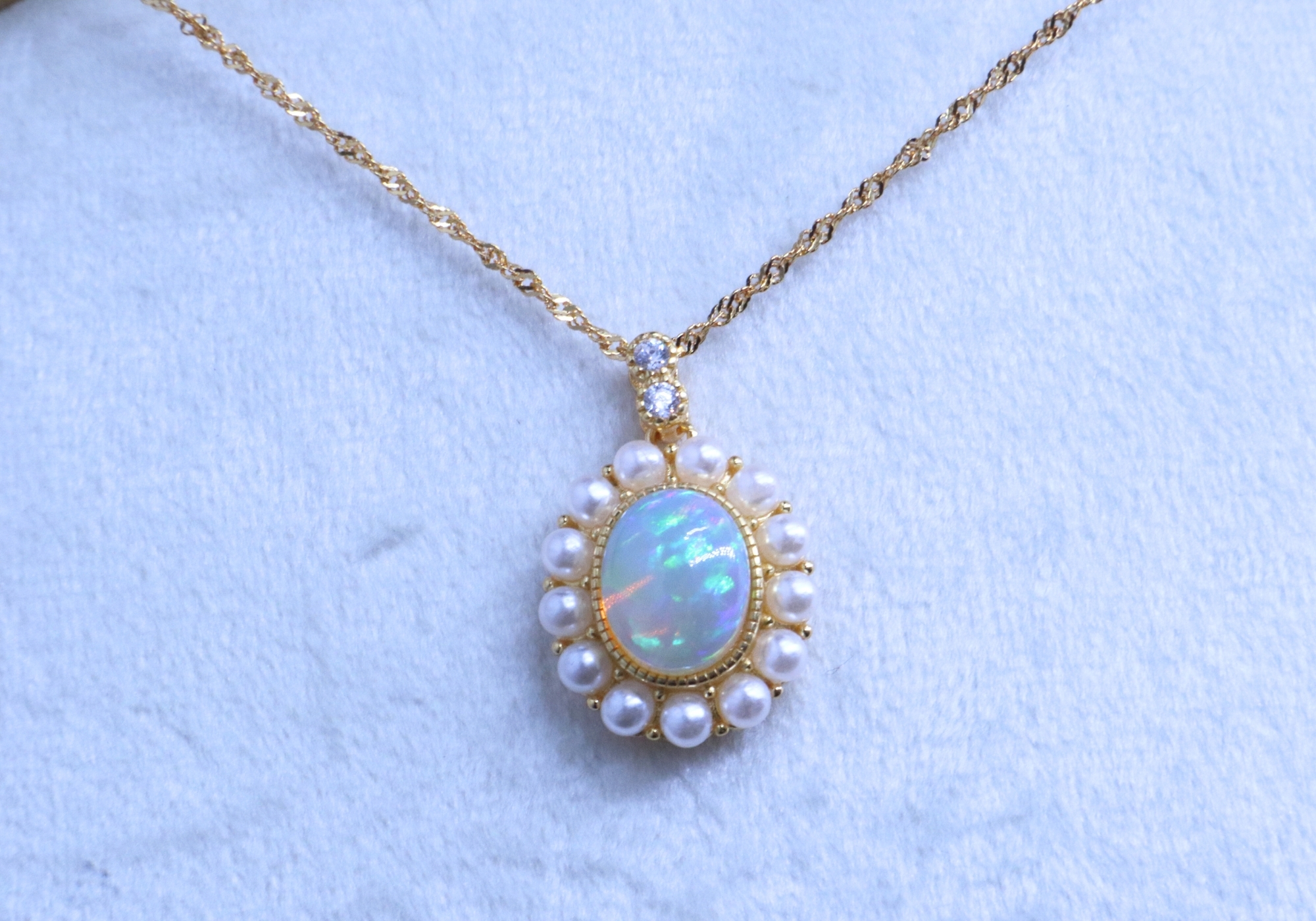 主要材質:純銀(鍍18K金)、歐泊、天然珍珠