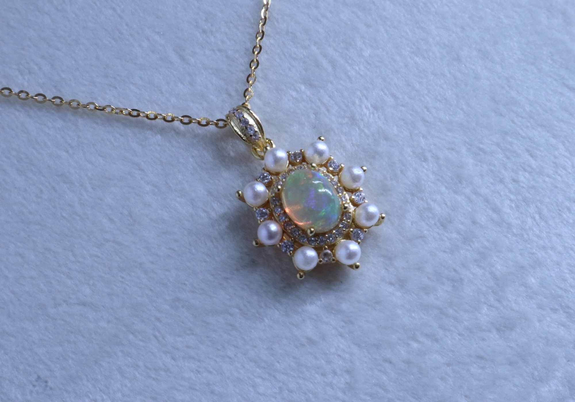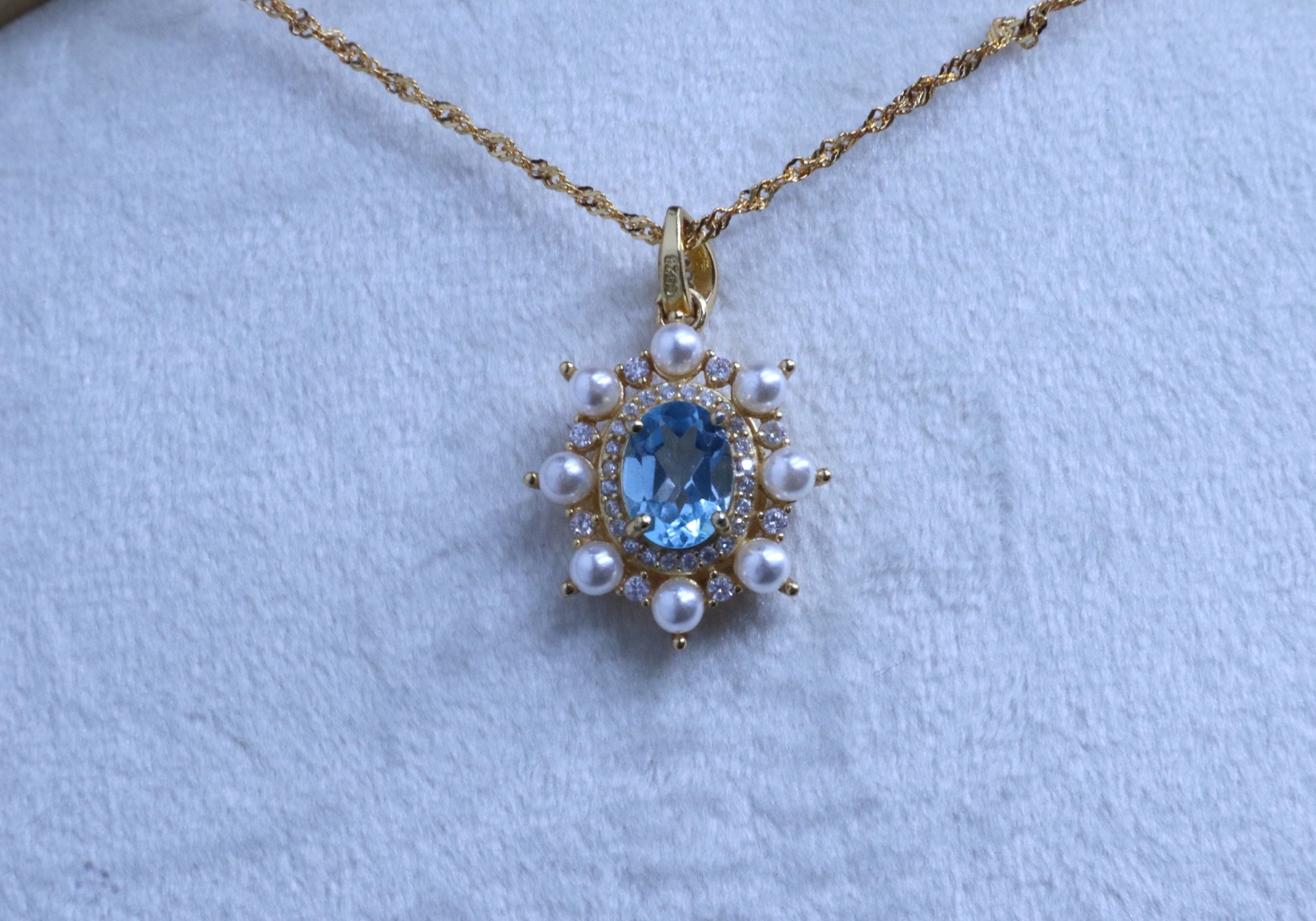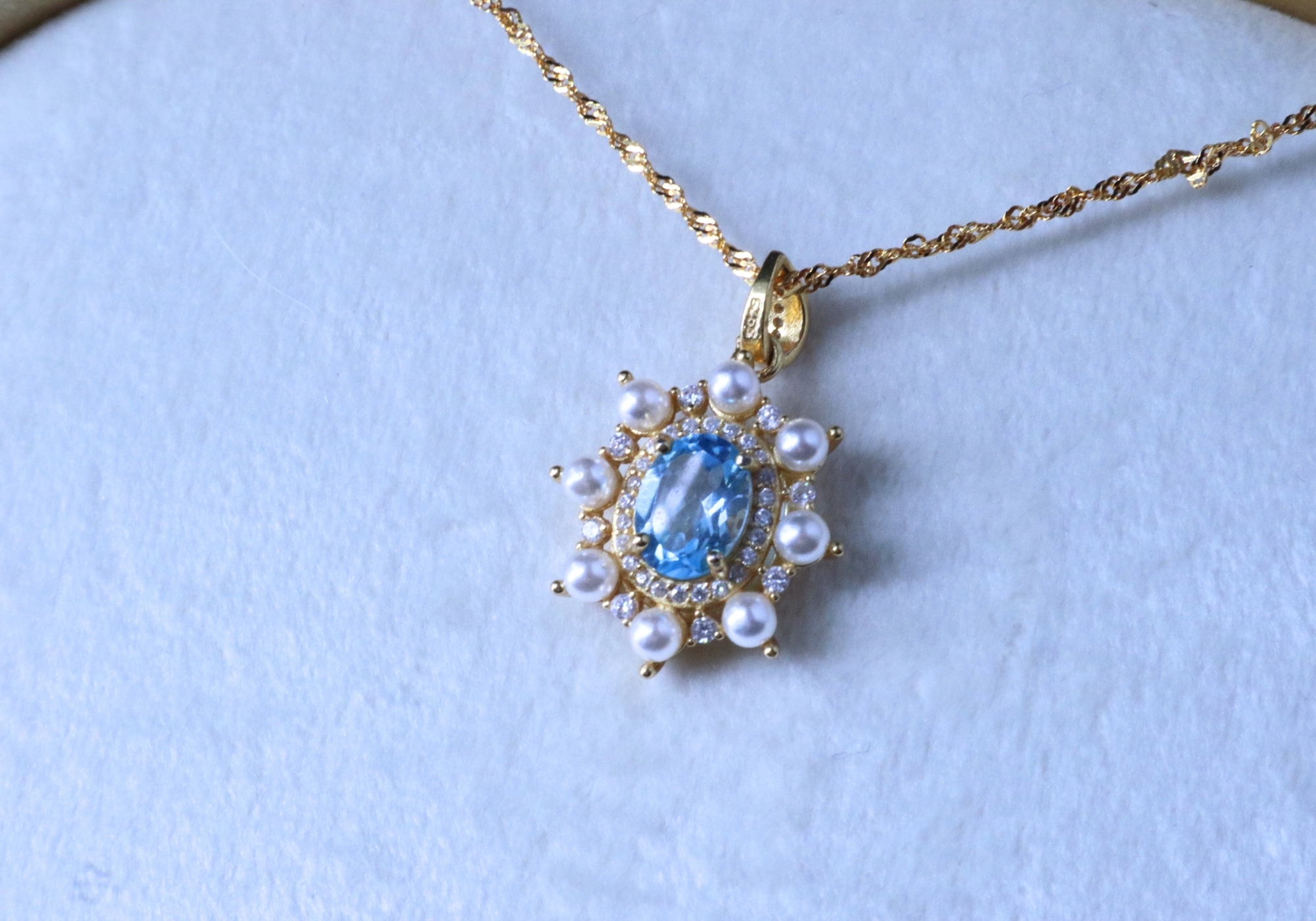 主要材質:純銀(鍍18K金)、歐泊/托帕石/海藍寶、天然珍珠