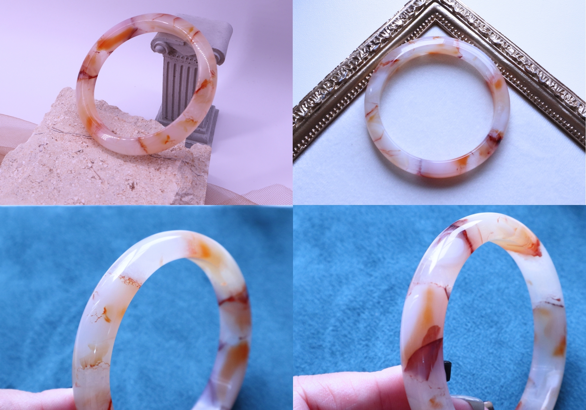 A.牛奶花瓣玉 紅膠花瑪瑙:圈口尺寸61/寬11.9mm/厚8.8mm