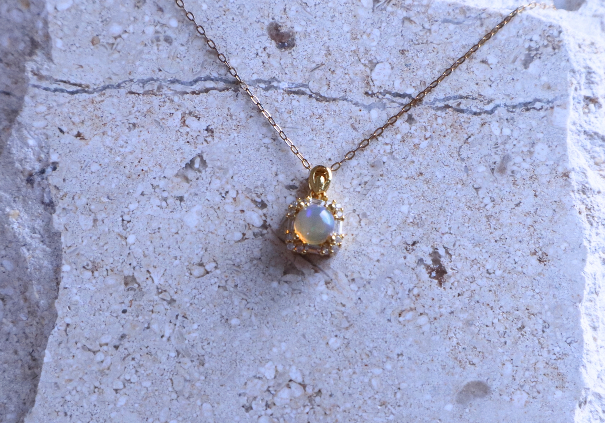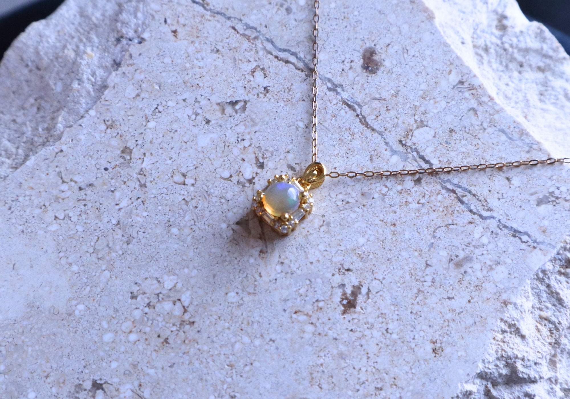 【金色方鑽環鑲歐泊-項鍊】