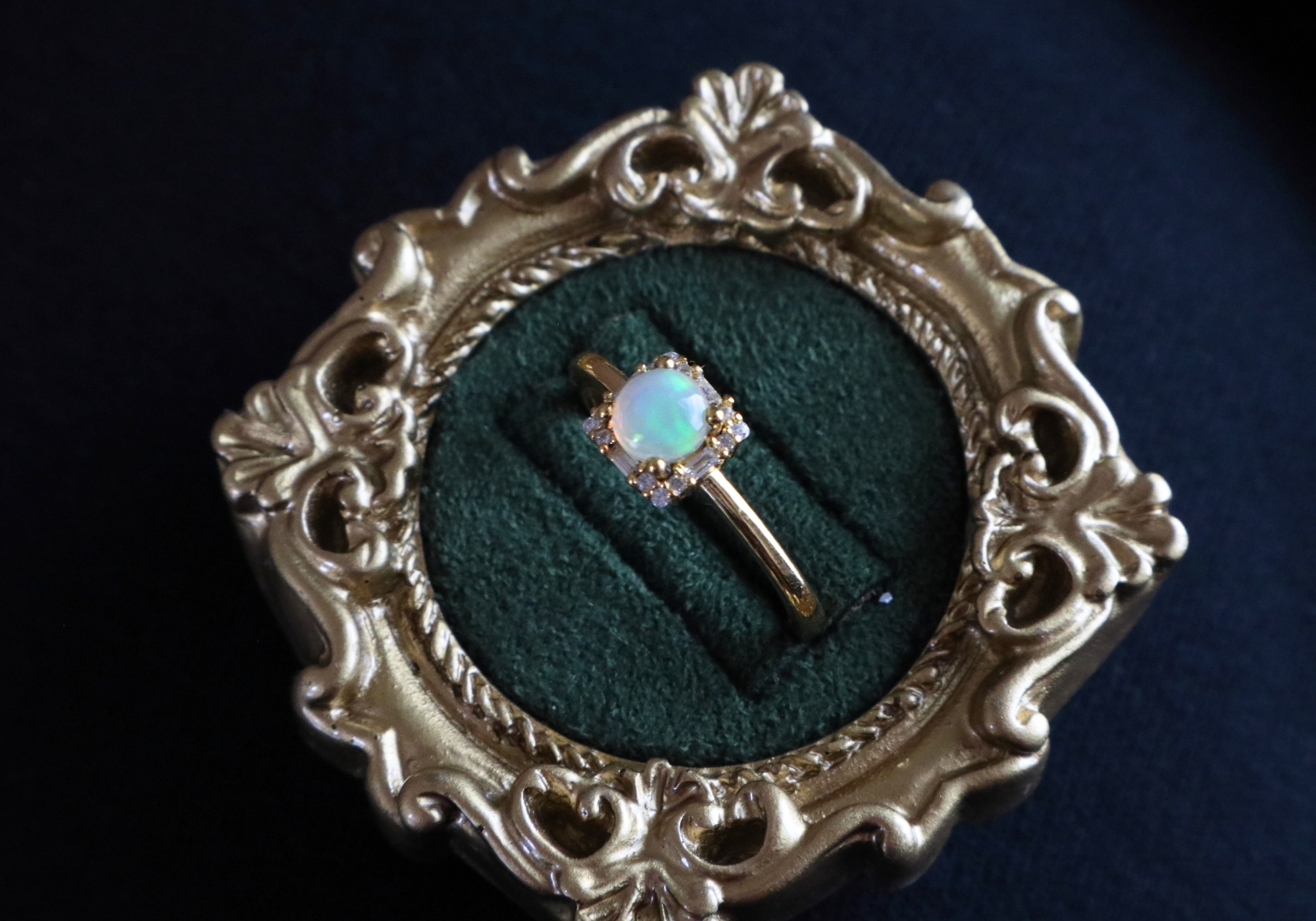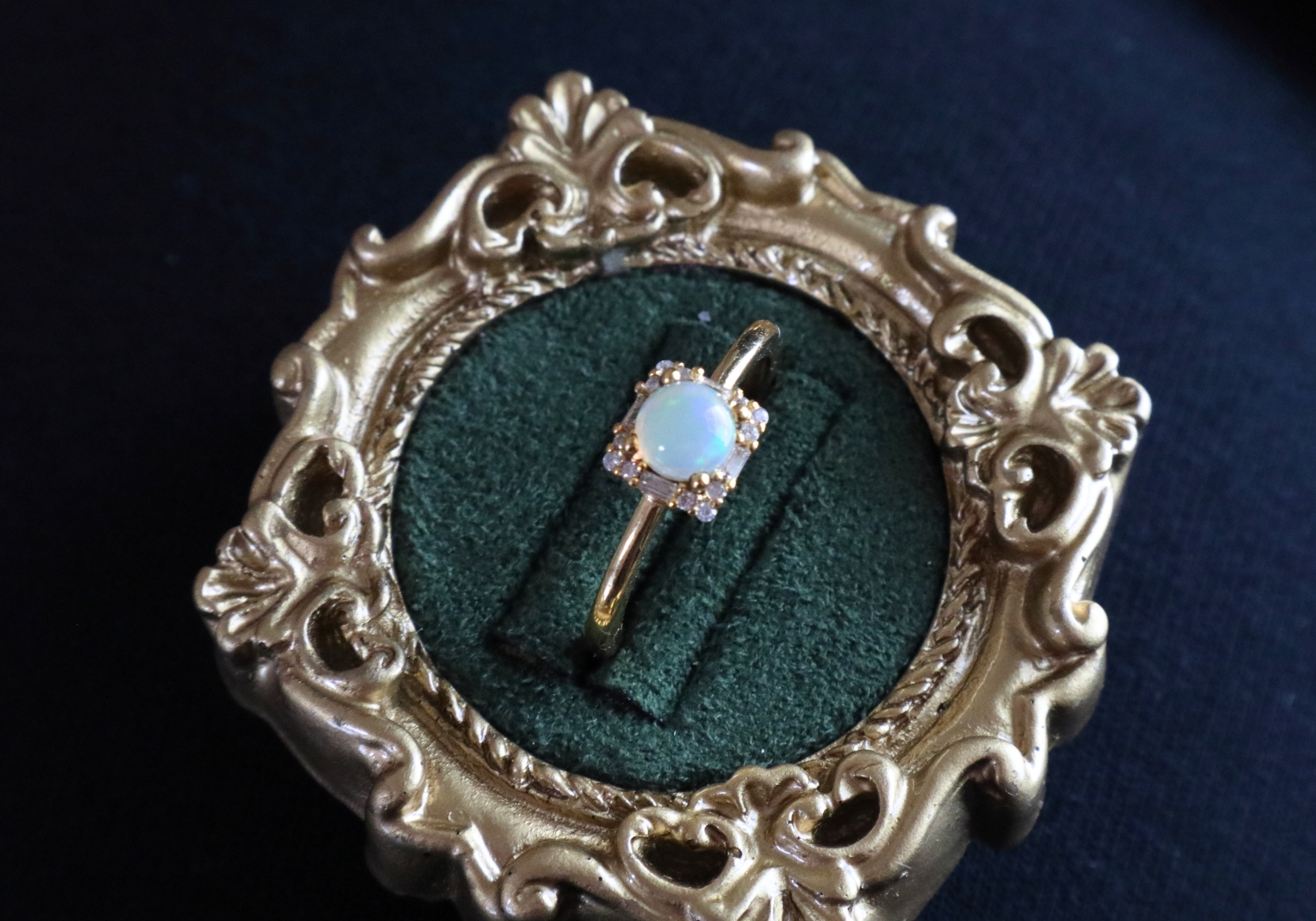 【金色方鑽環鑲歐泊-戒指】