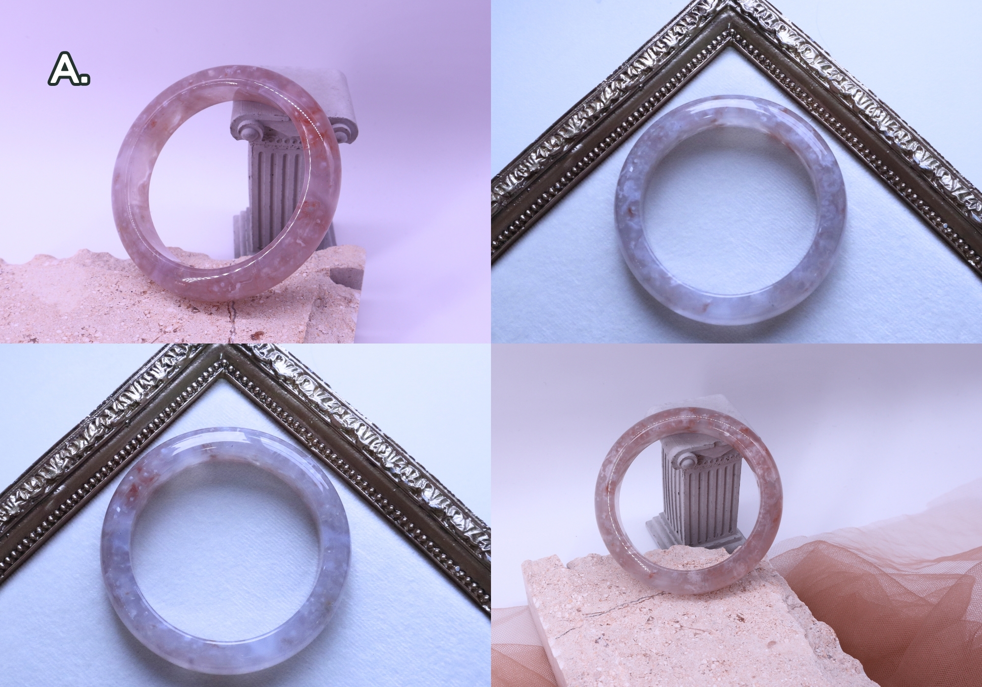 A.煙紫整圈蕾絲櫻花瑪瑙圈口尺寸56.6/寬14mm/厚9mm