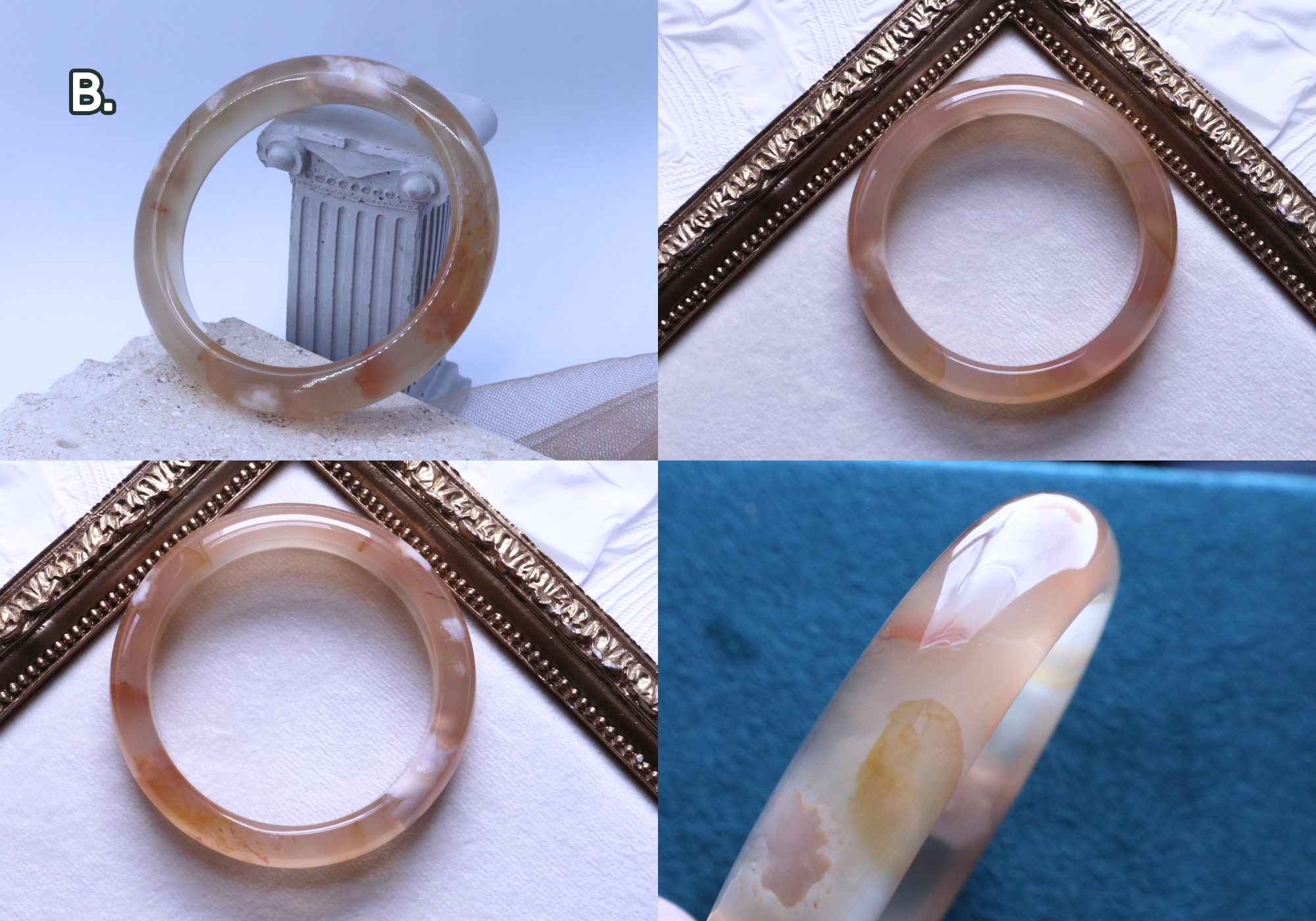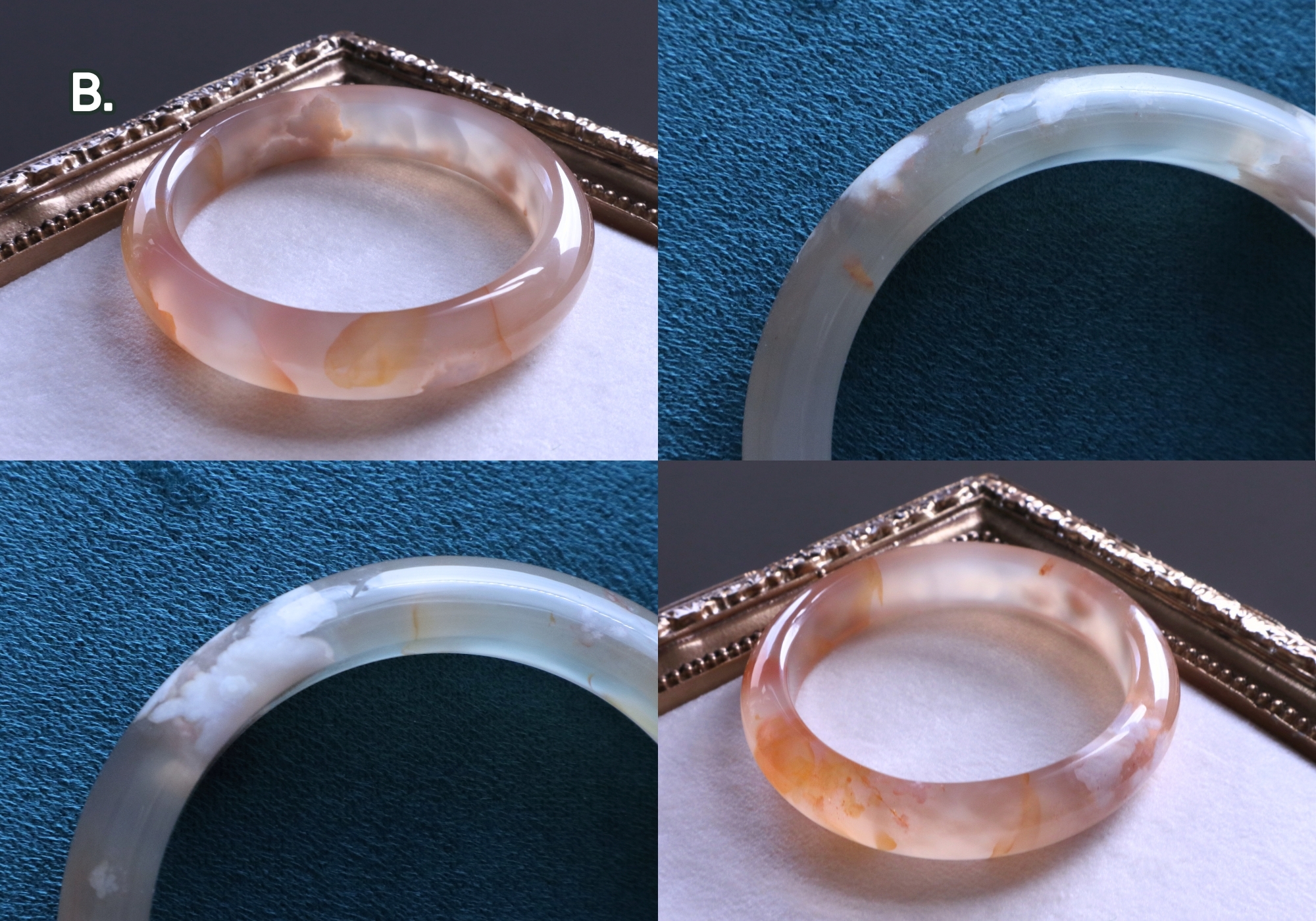 B.金線飄花桂花釀瑪瑙:圈口尺寸56.7/寬13.4mm/厚8.2mm