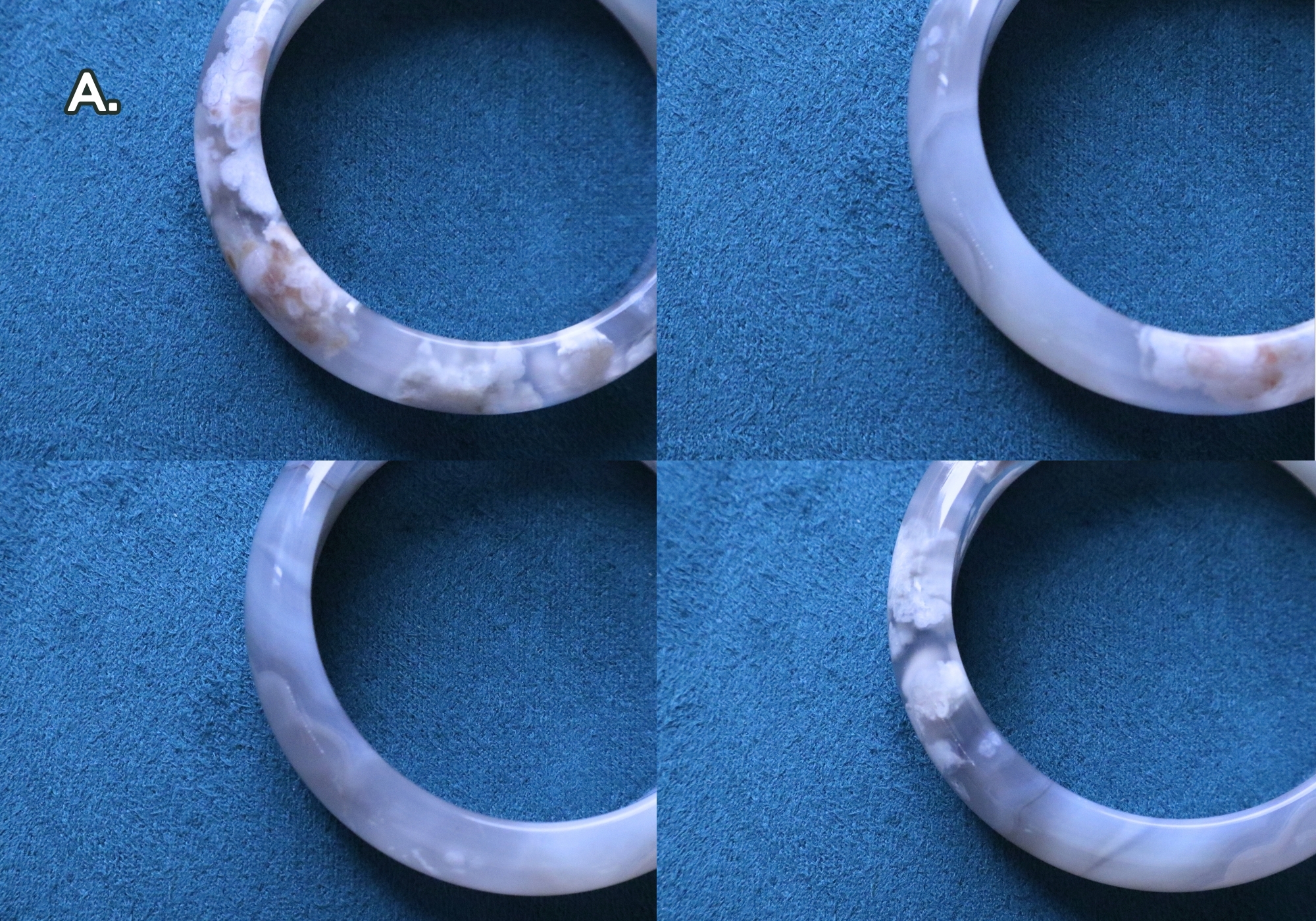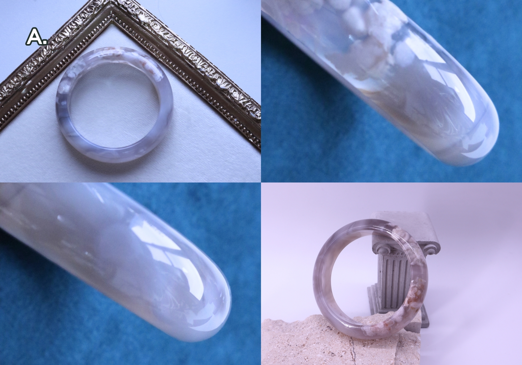 A. 煙霧透光白粉金花瑪瑙:圈口尺寸52.4/寬15.5mm/厚8mm