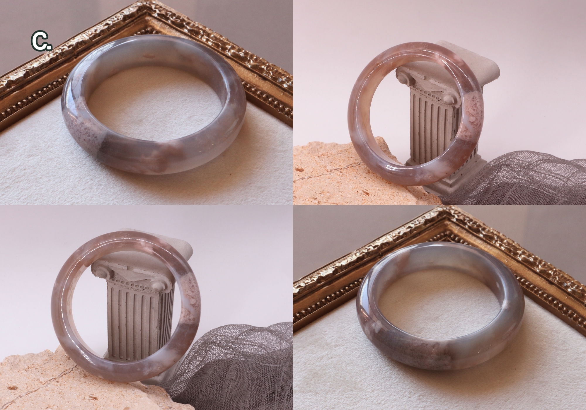 C. 莫蘭迪灰晶洞細閃櫻花瑪瑙-補礦缺:圈口尺寸52.6/寬13.7mm/厚9.2mm