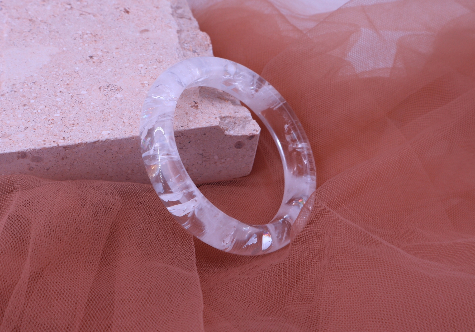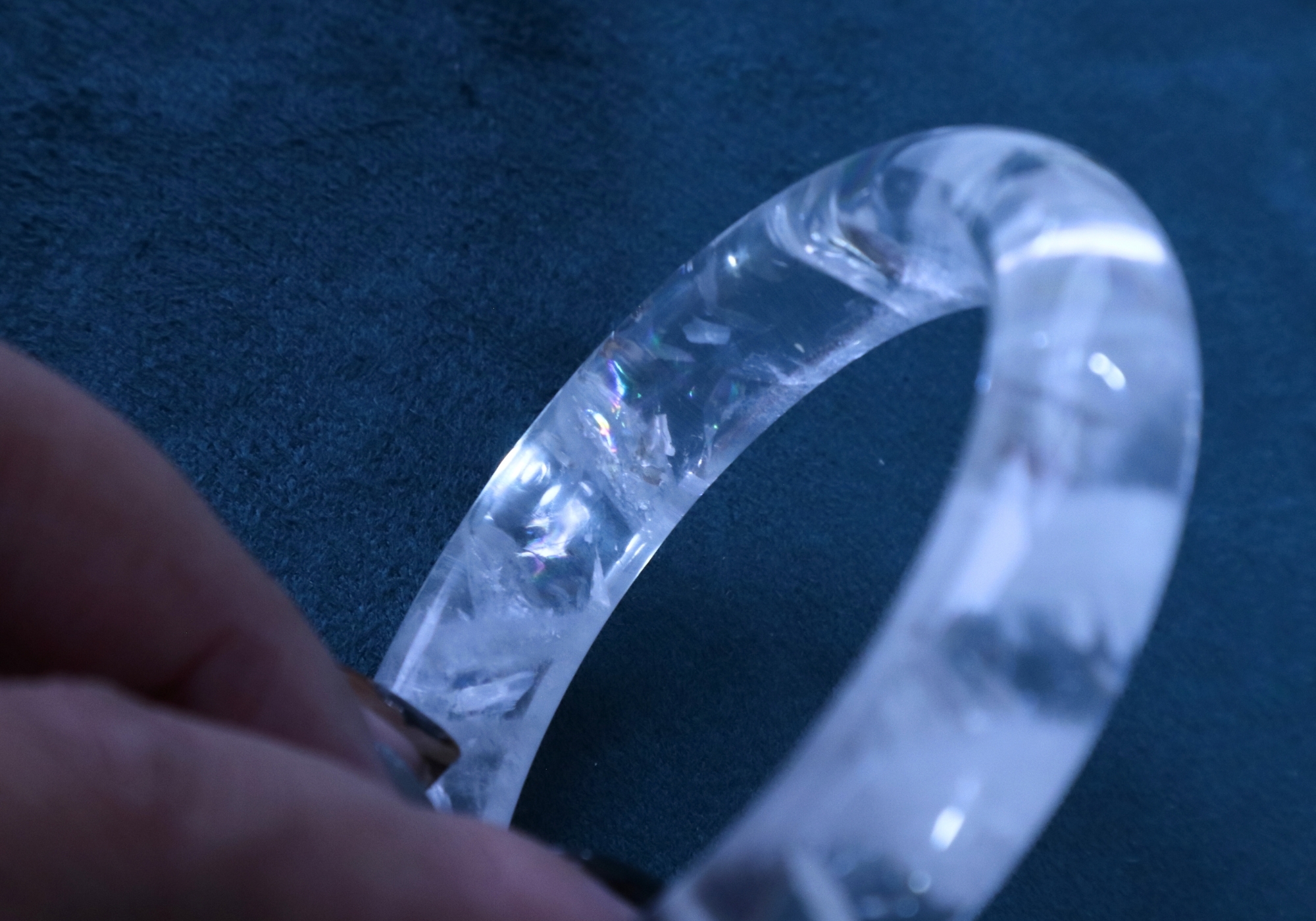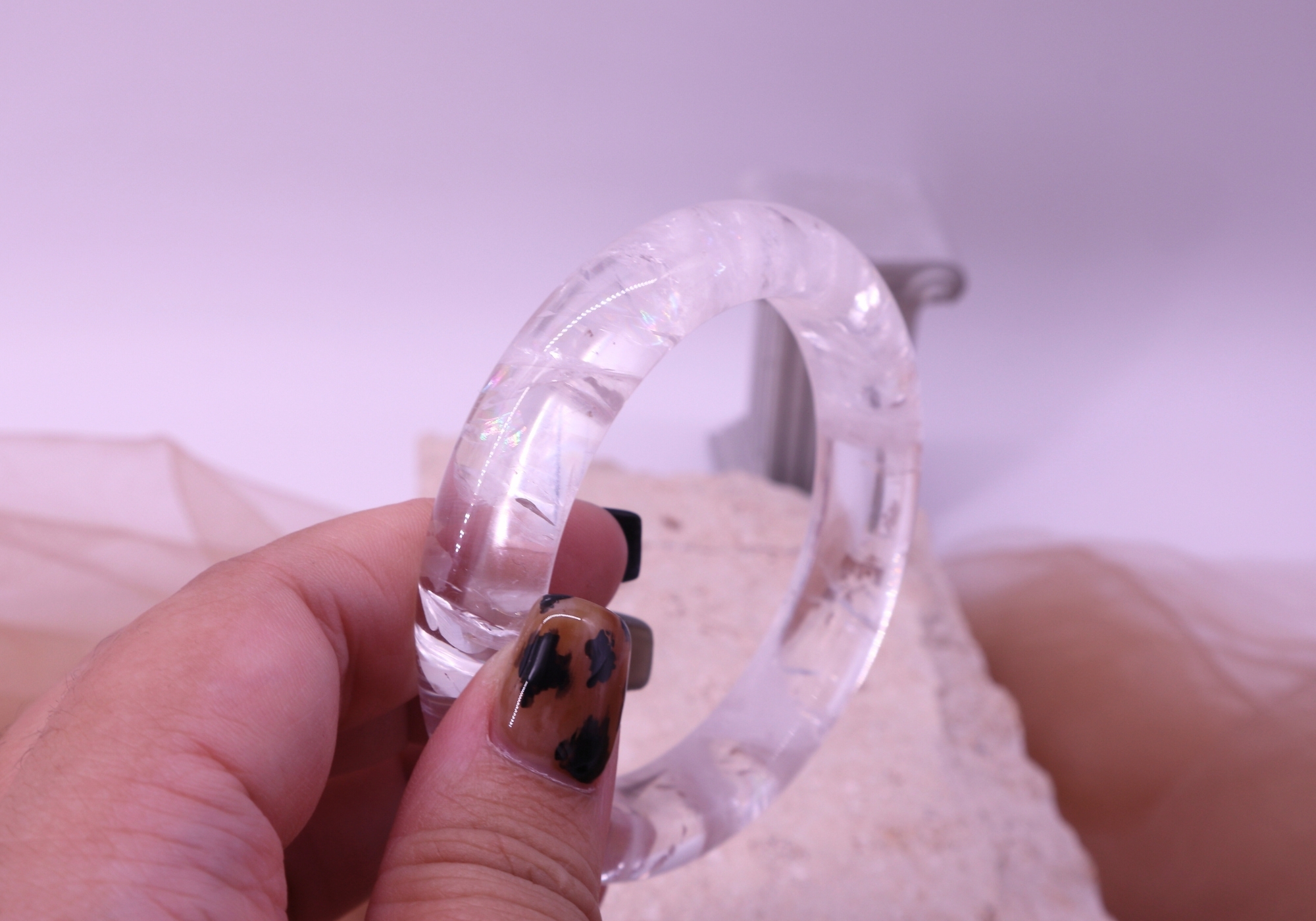 【天然石水晶手鐲】圈口尺寸54~55 收藏級✨極透體 整圈彩虹白幽靈🌈