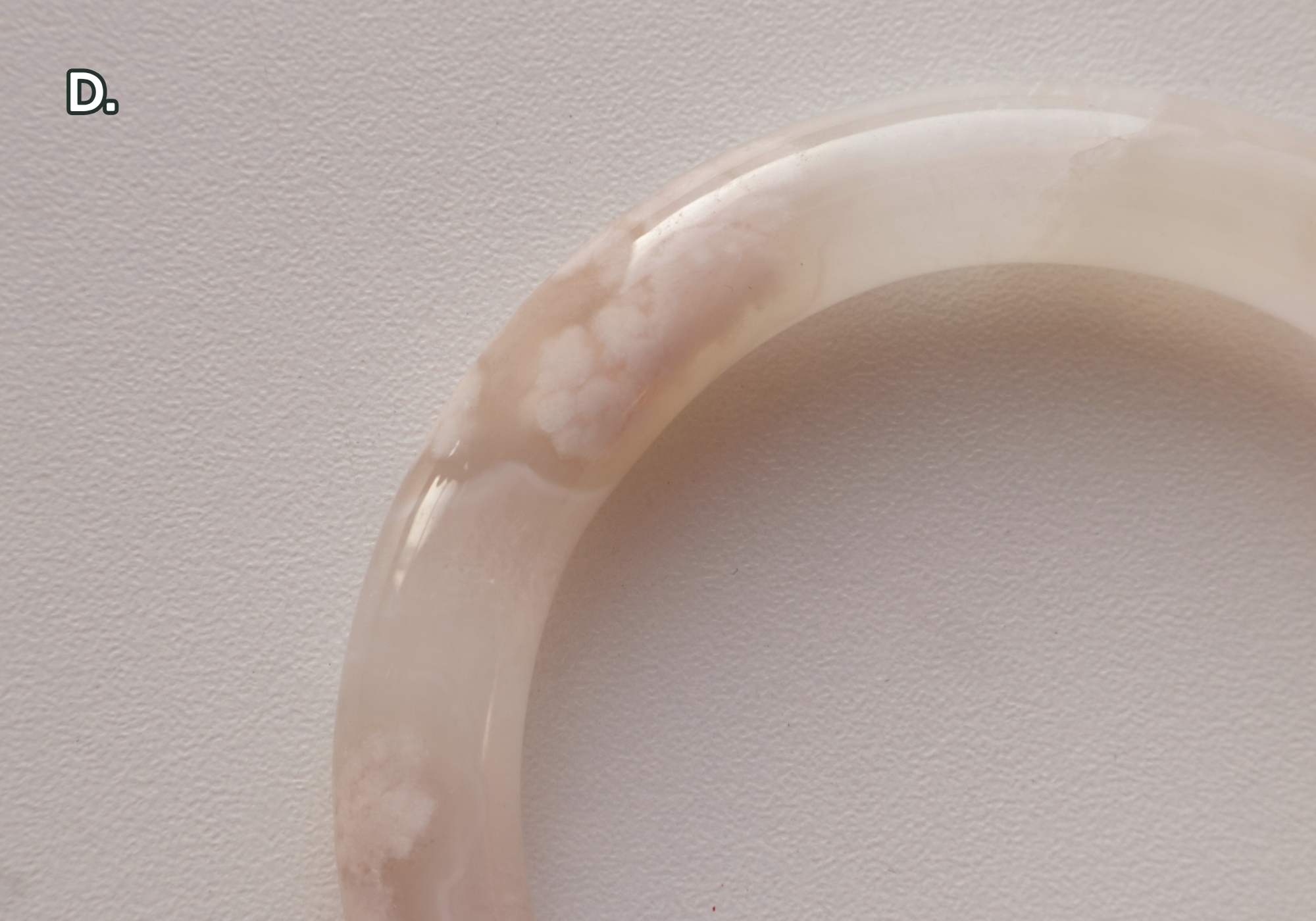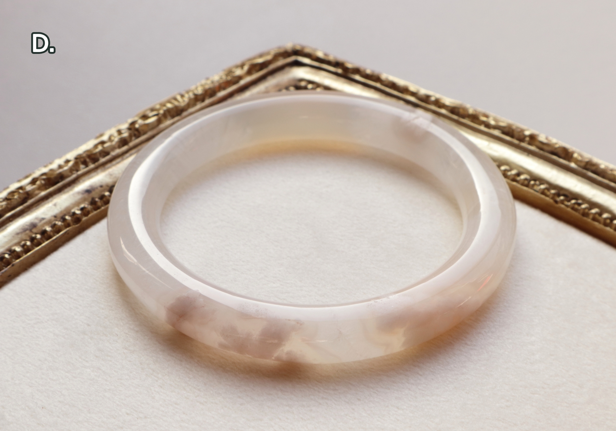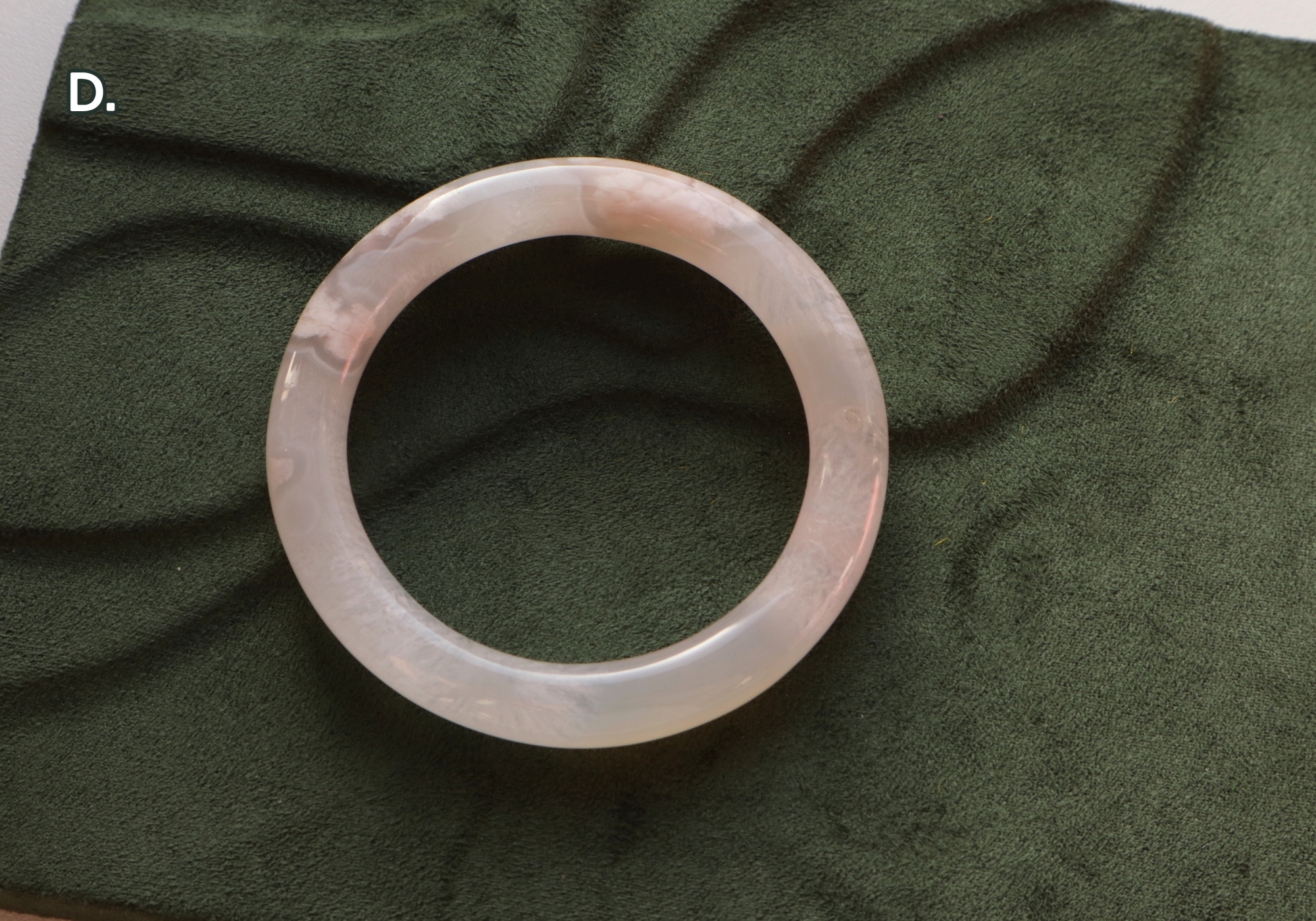 D.冰霜雪花淨透瑪瑙鐲-圓條 礦缺已補:圈口尺寸58.7/寬9.7mm/厚9.7mm