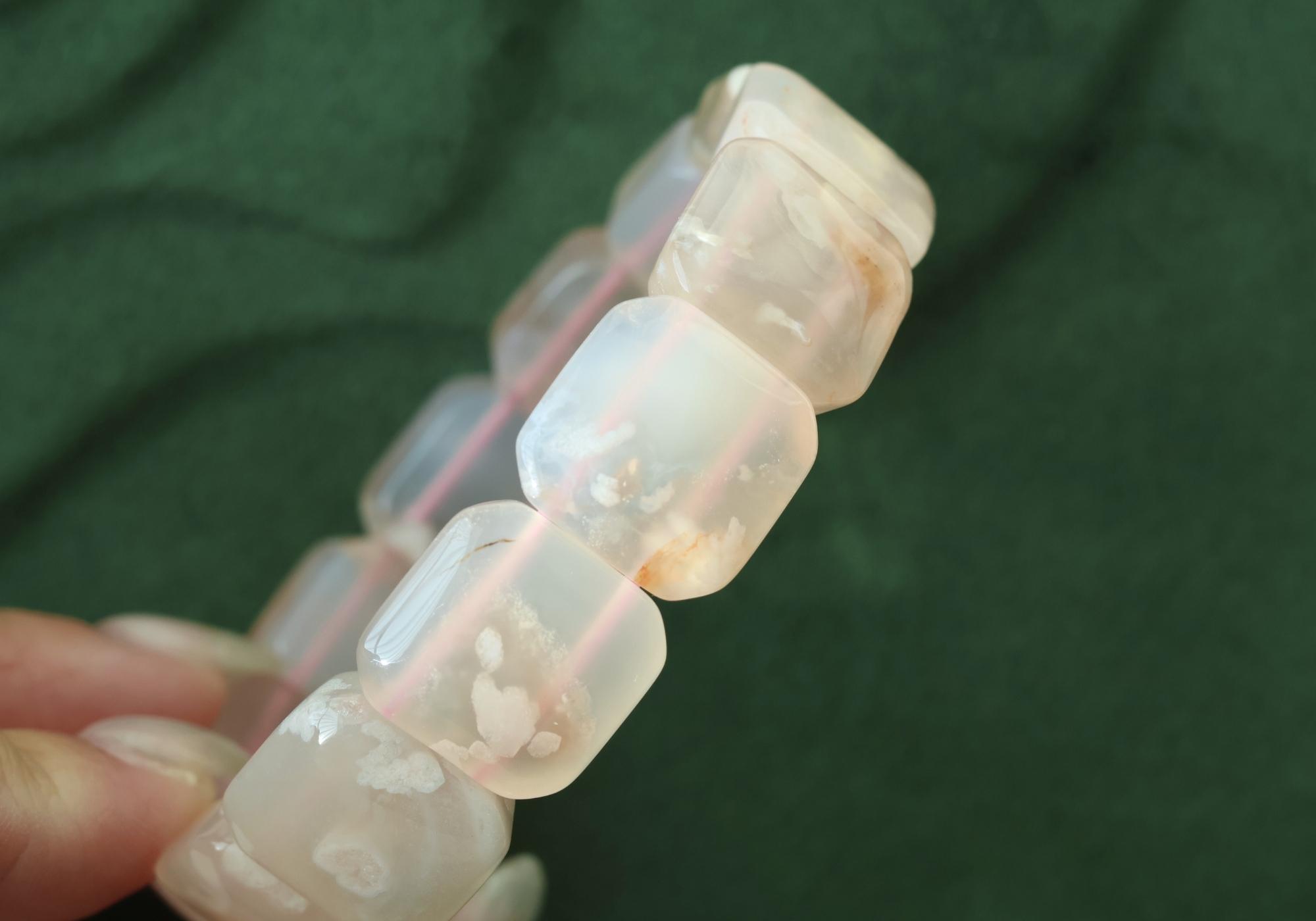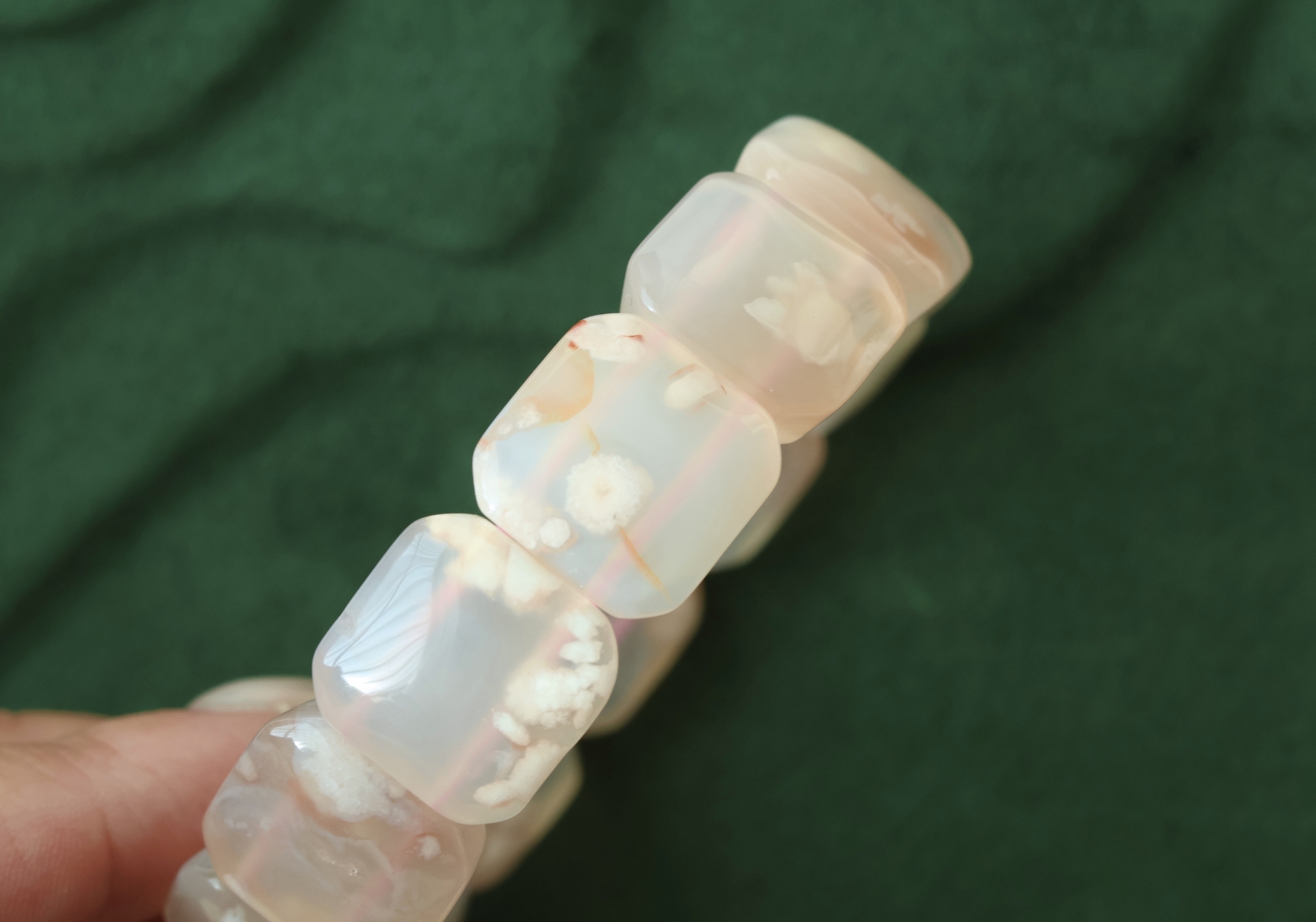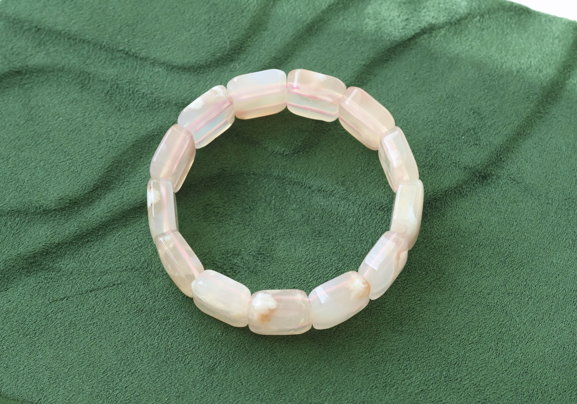 【天然石水晶手牌】櫻花瑪瑙 手排手串 彈性手圍