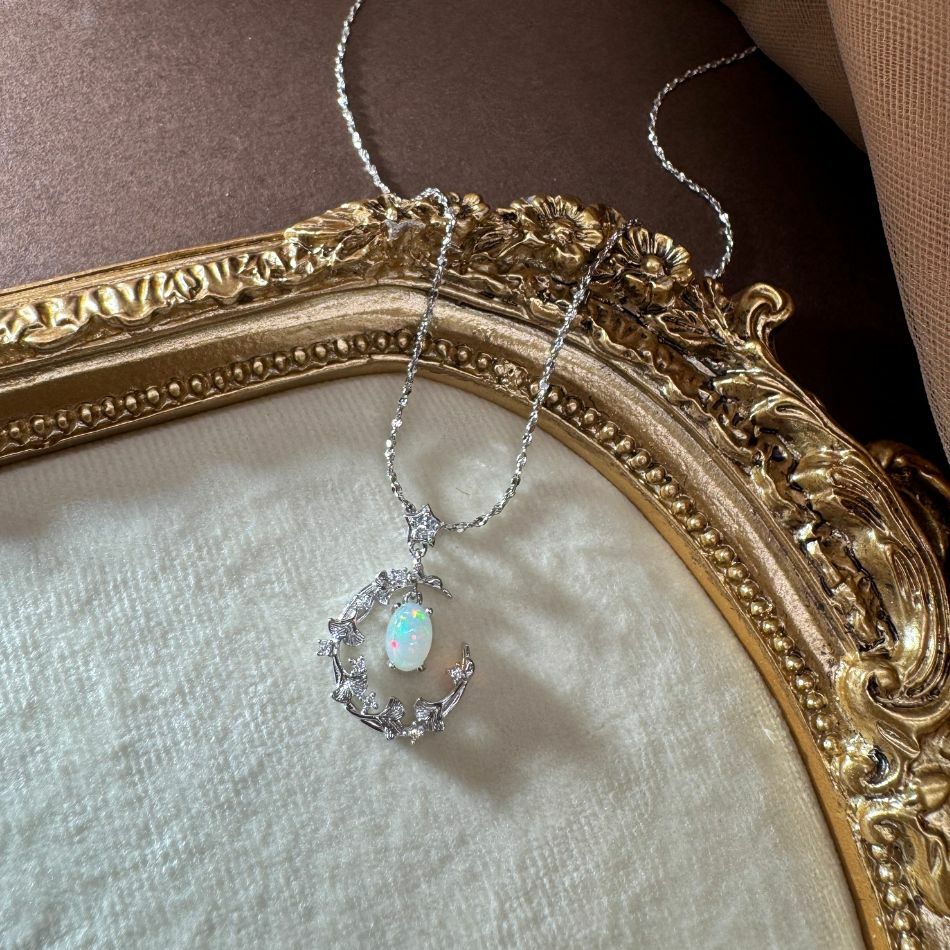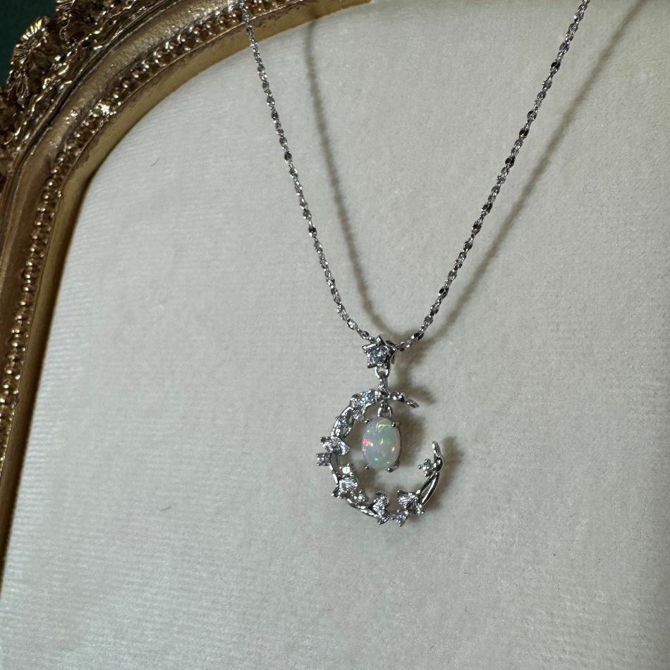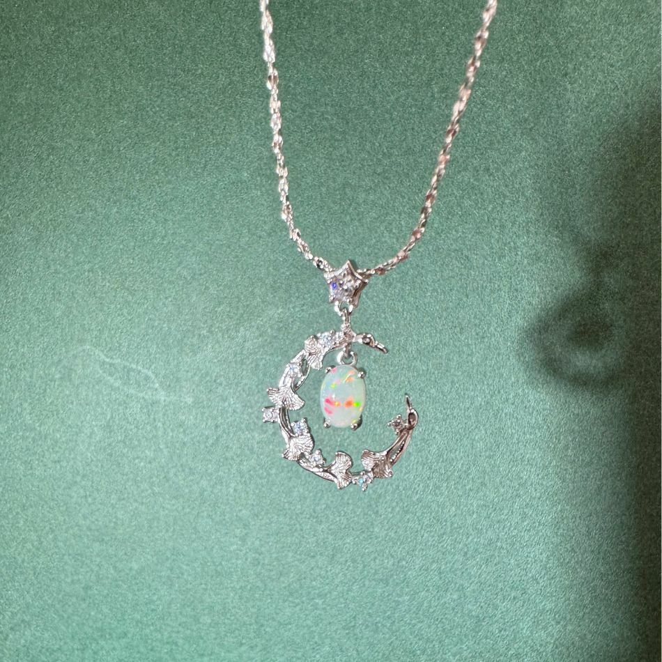 銀杏星月 歐泊蛋白石 純銀項鍊