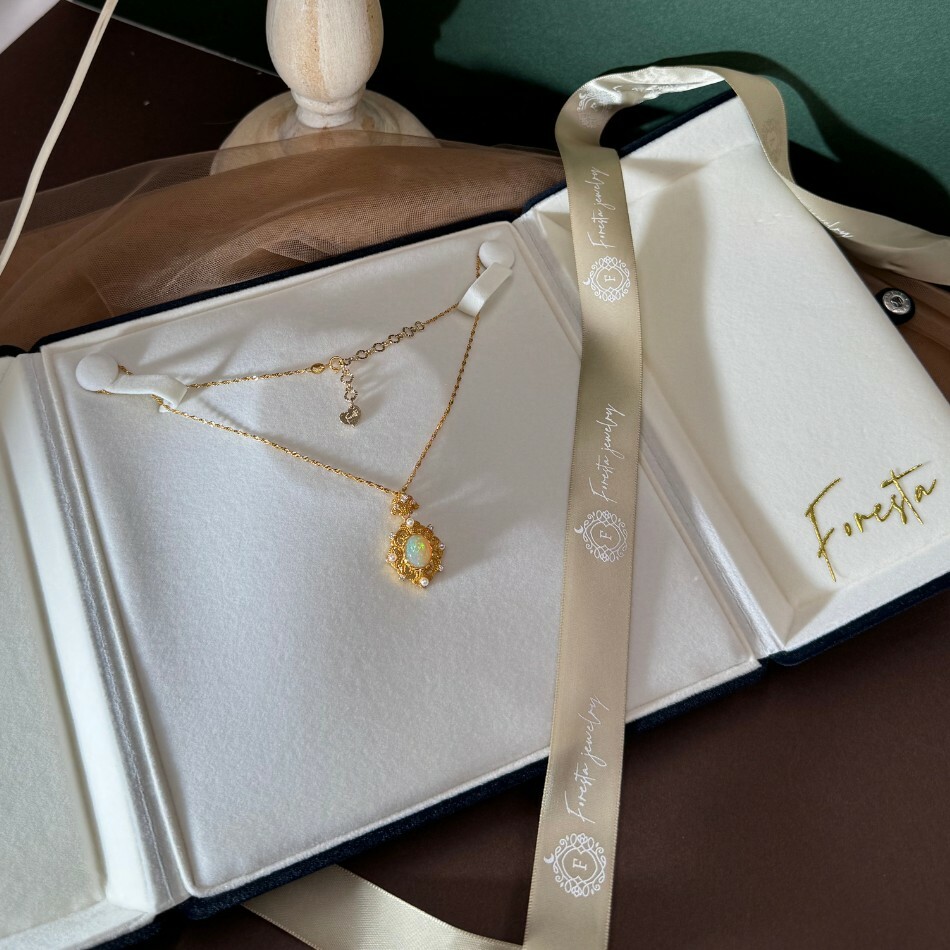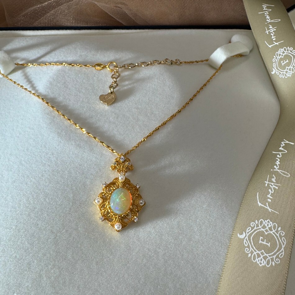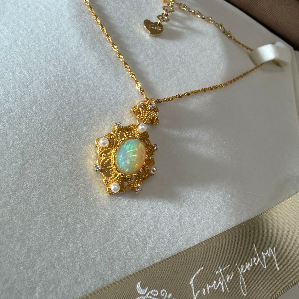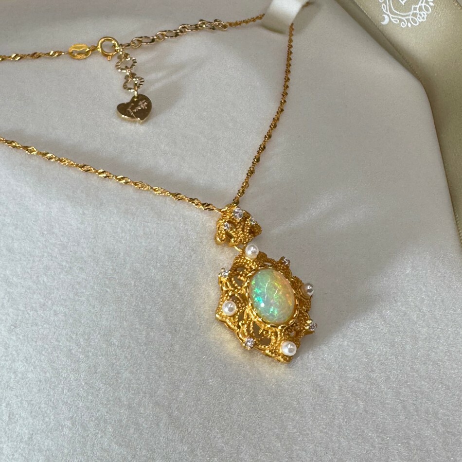 千粒穀工藝 巴洛克歐泊蛋白石 純銀項鍊