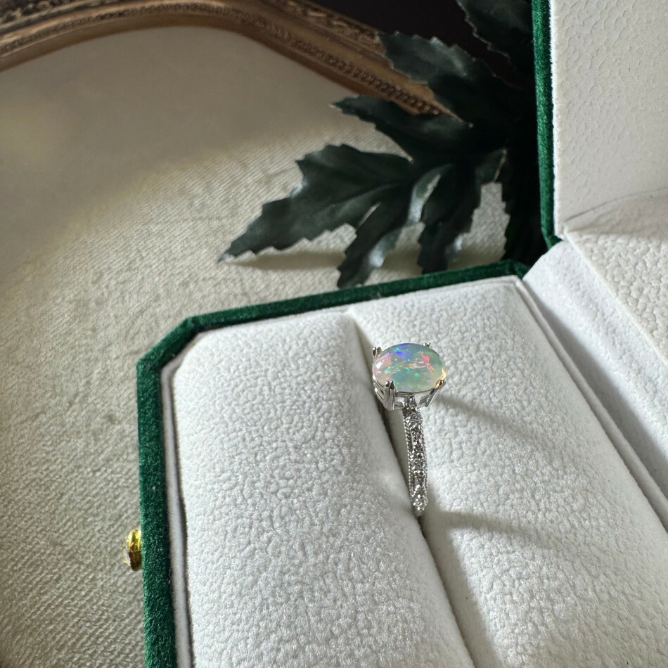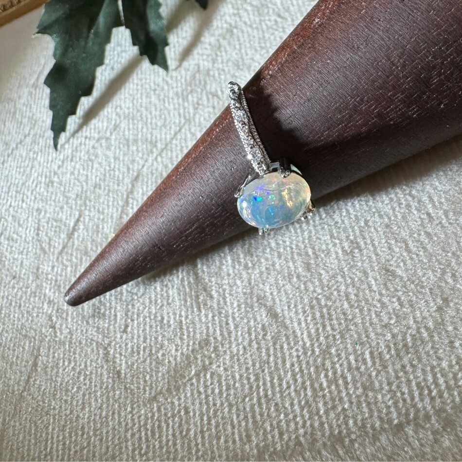 晶透歐泊蛋白石 蕾絲千粒穀戒臂 純銀戒指
