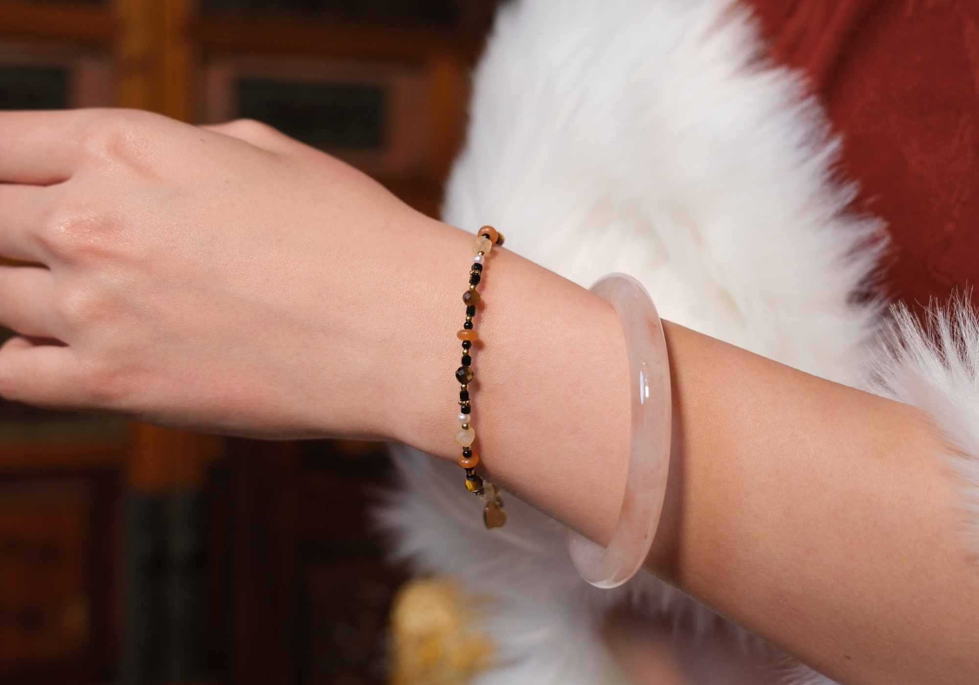 黑尖晶、虎眼石、紅東陵、黃水晶、天然珍珠