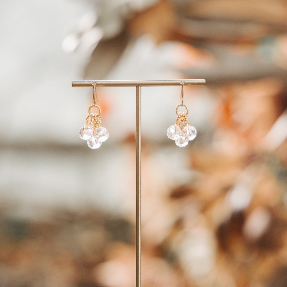 天然石白水晶 短墜飾勾針耳環