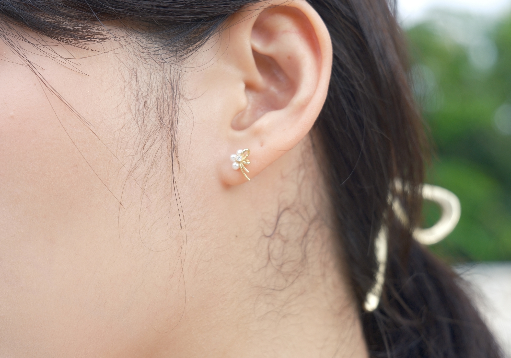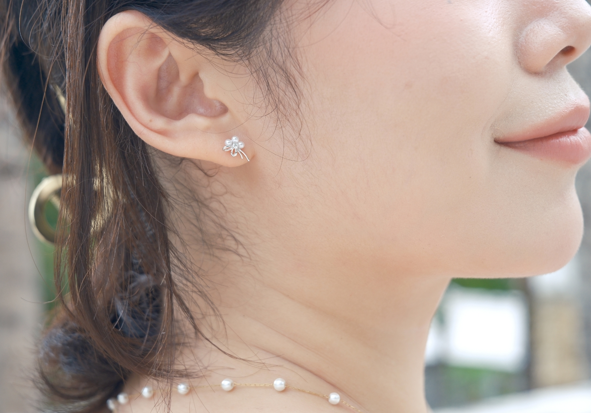 綁束珍珠給自己 天然珍珠小花朵 純銀 耳針式耳環 二色