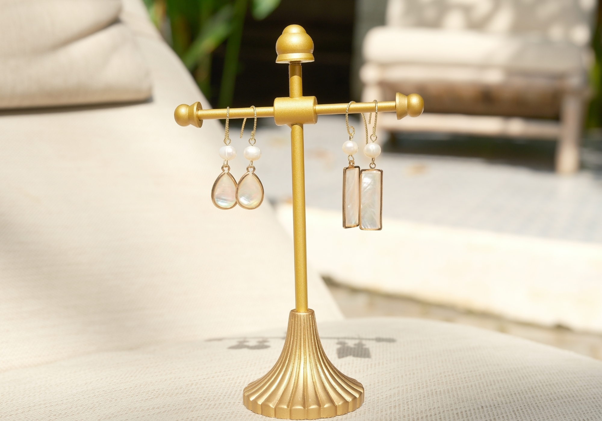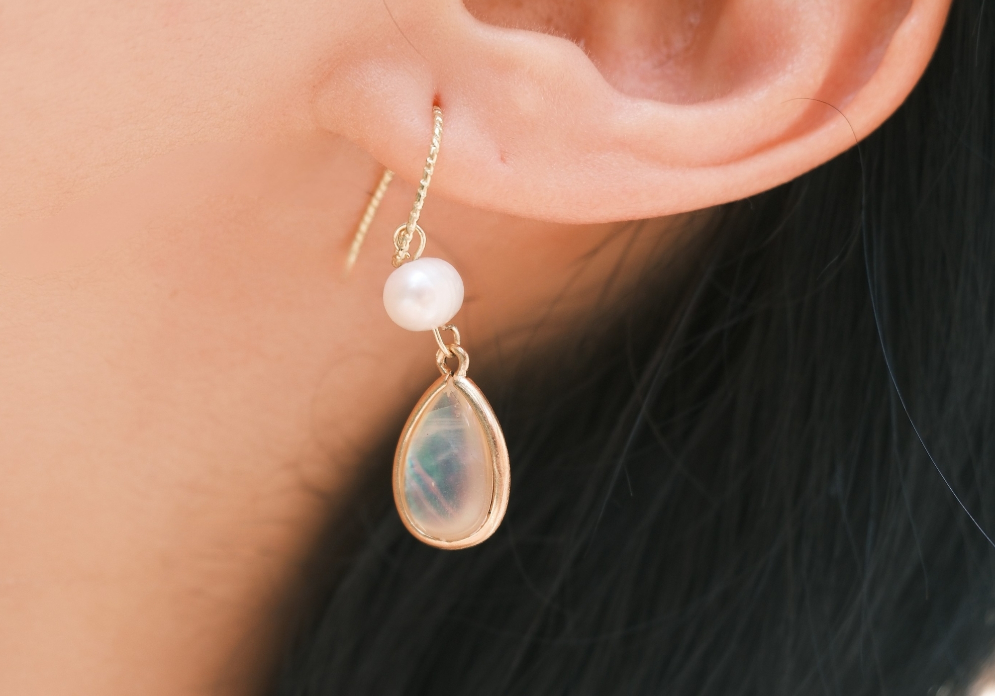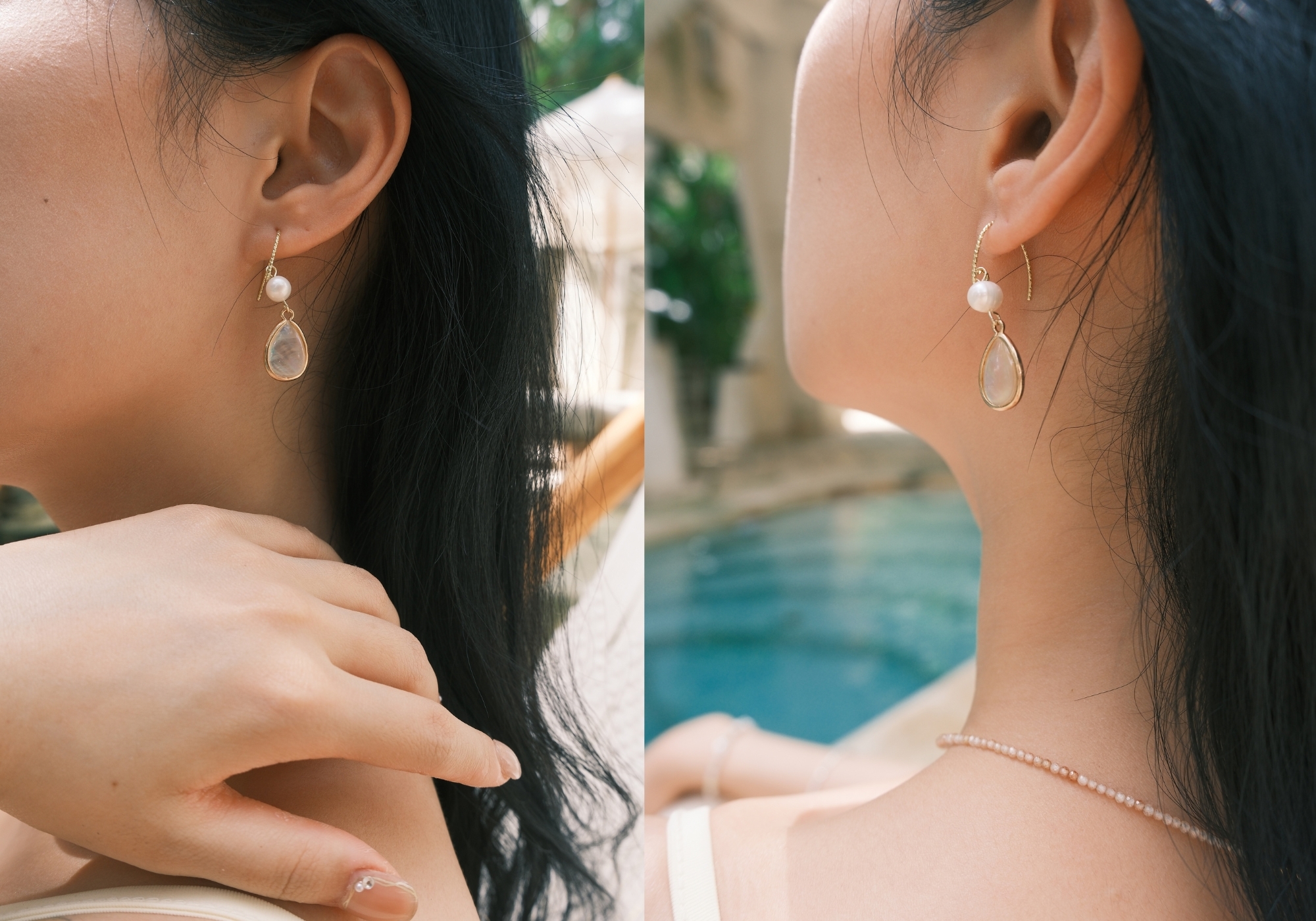 椰影微風系列 水滴椰影 長影椰風 珍珠貝殼光 針式耳環