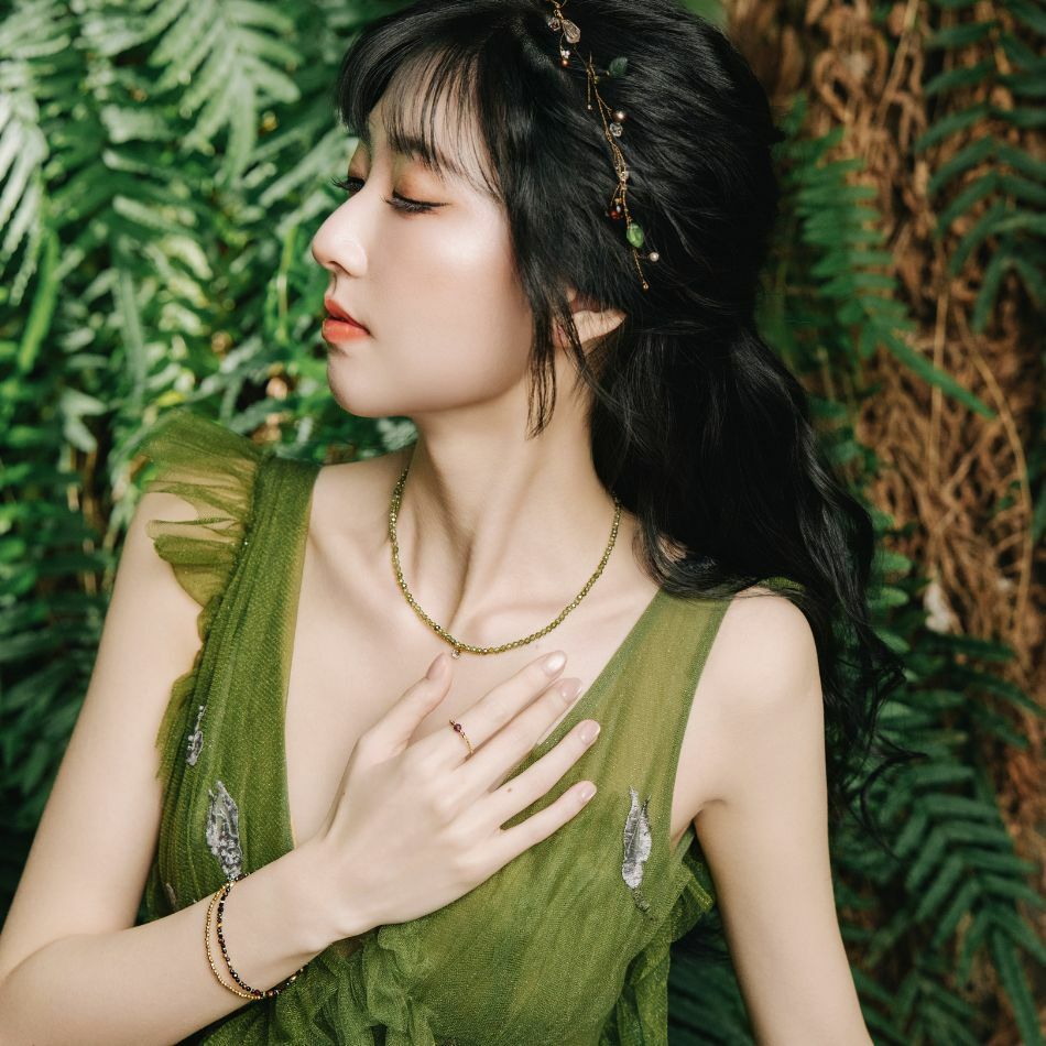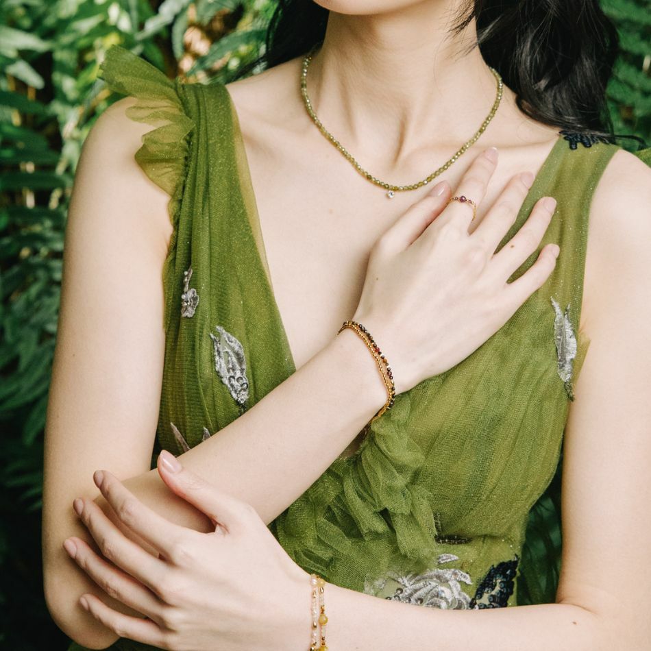 水晶天然石 橄欖綠水晶單水鑽 項鍊