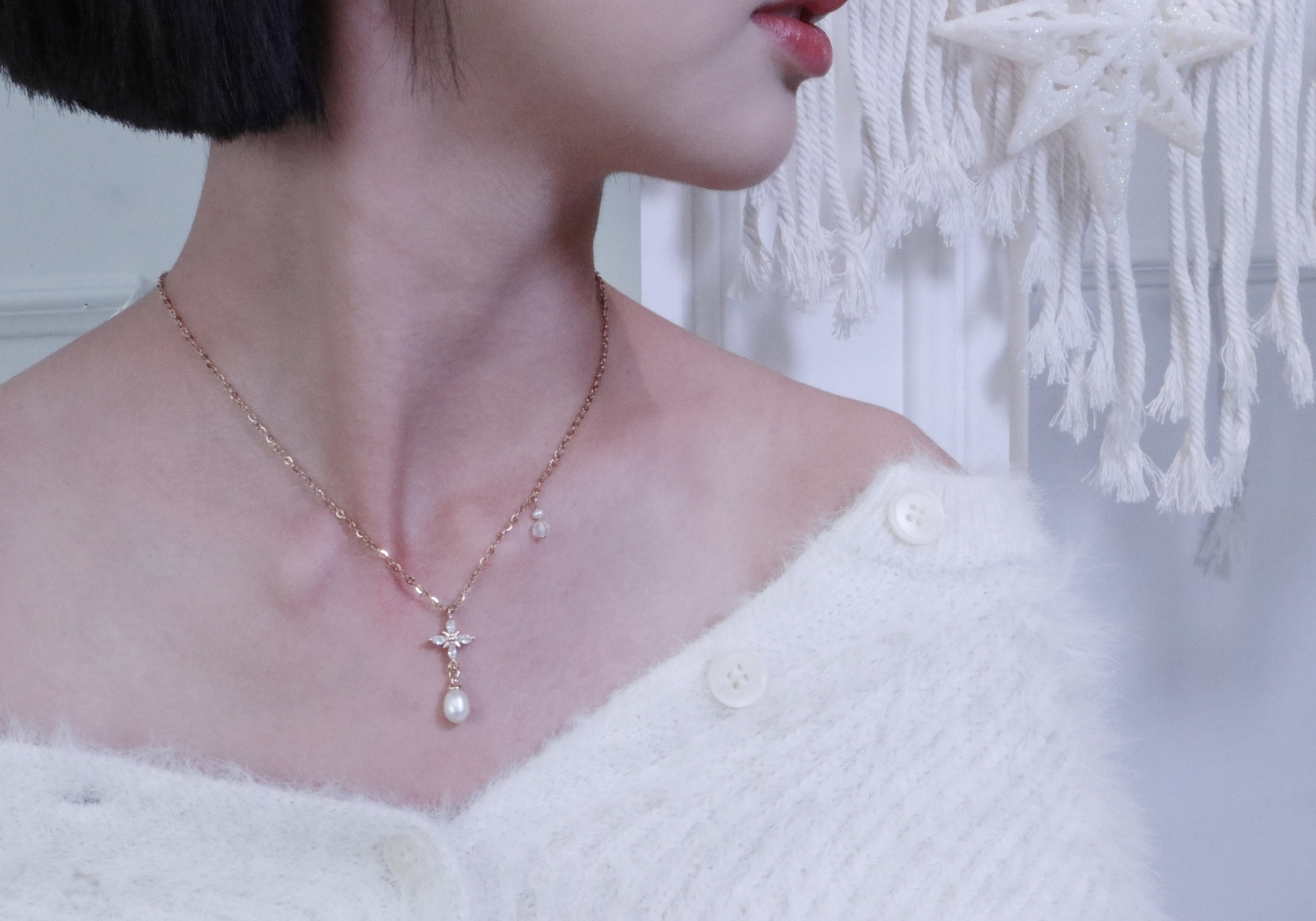 墜飾尺寸:2.5 cm/小花墜飾:1.1 cm/珍珠:0.5 cm