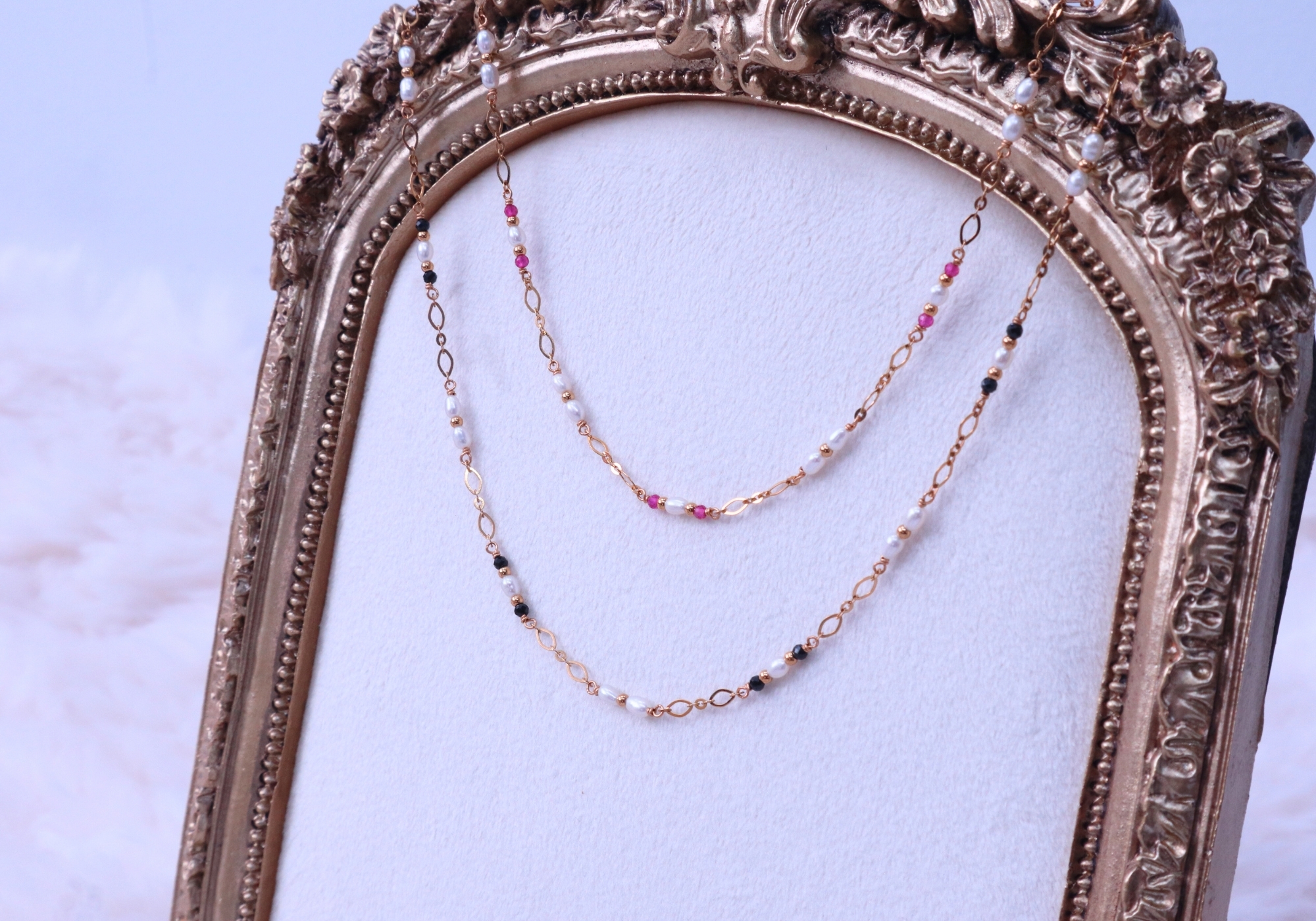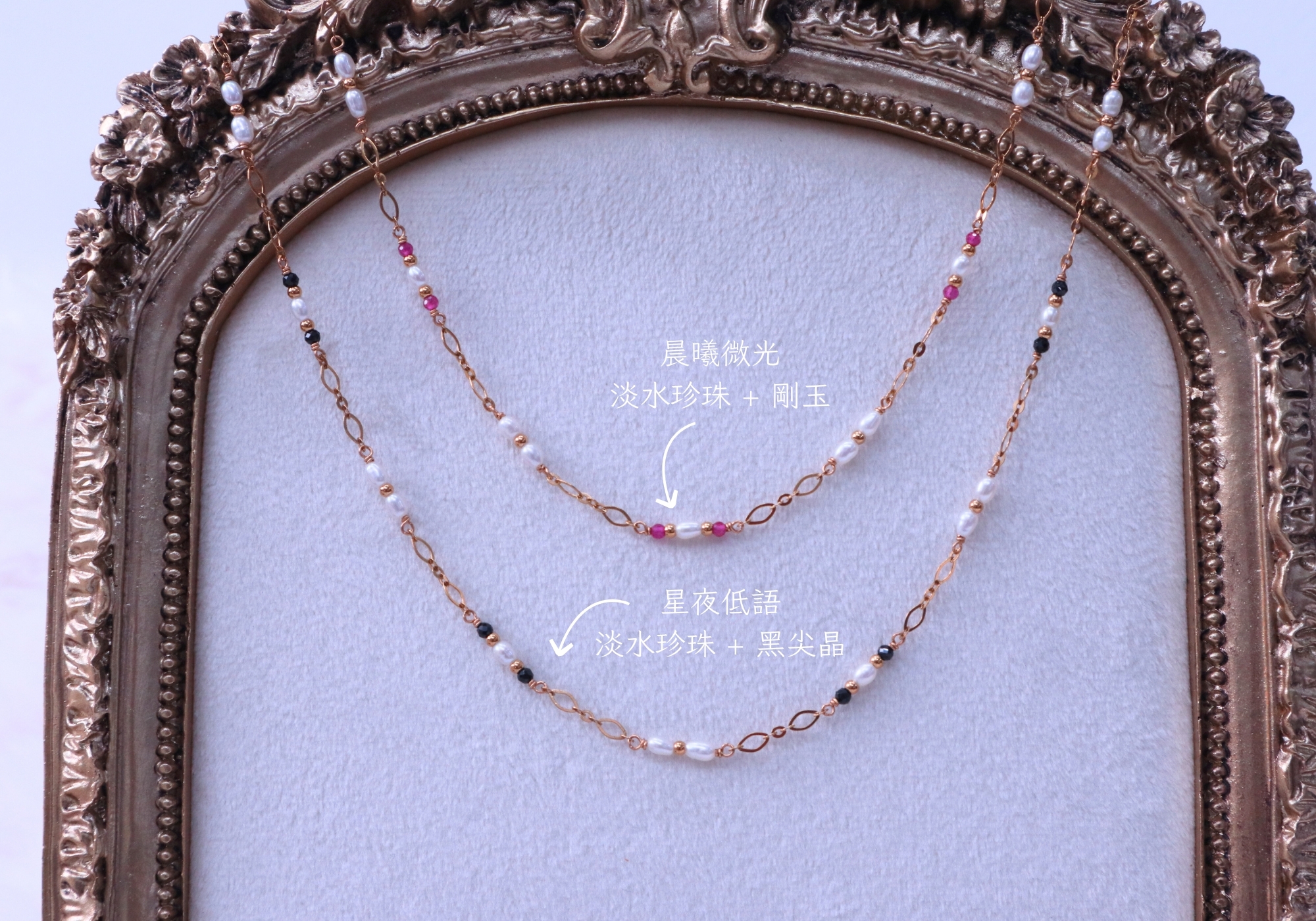 晨曦微光 Dawn Radiance / 星夜低語 Midnight Whisper 淡水珍珠 剛玉 黑尖晶 項鍊