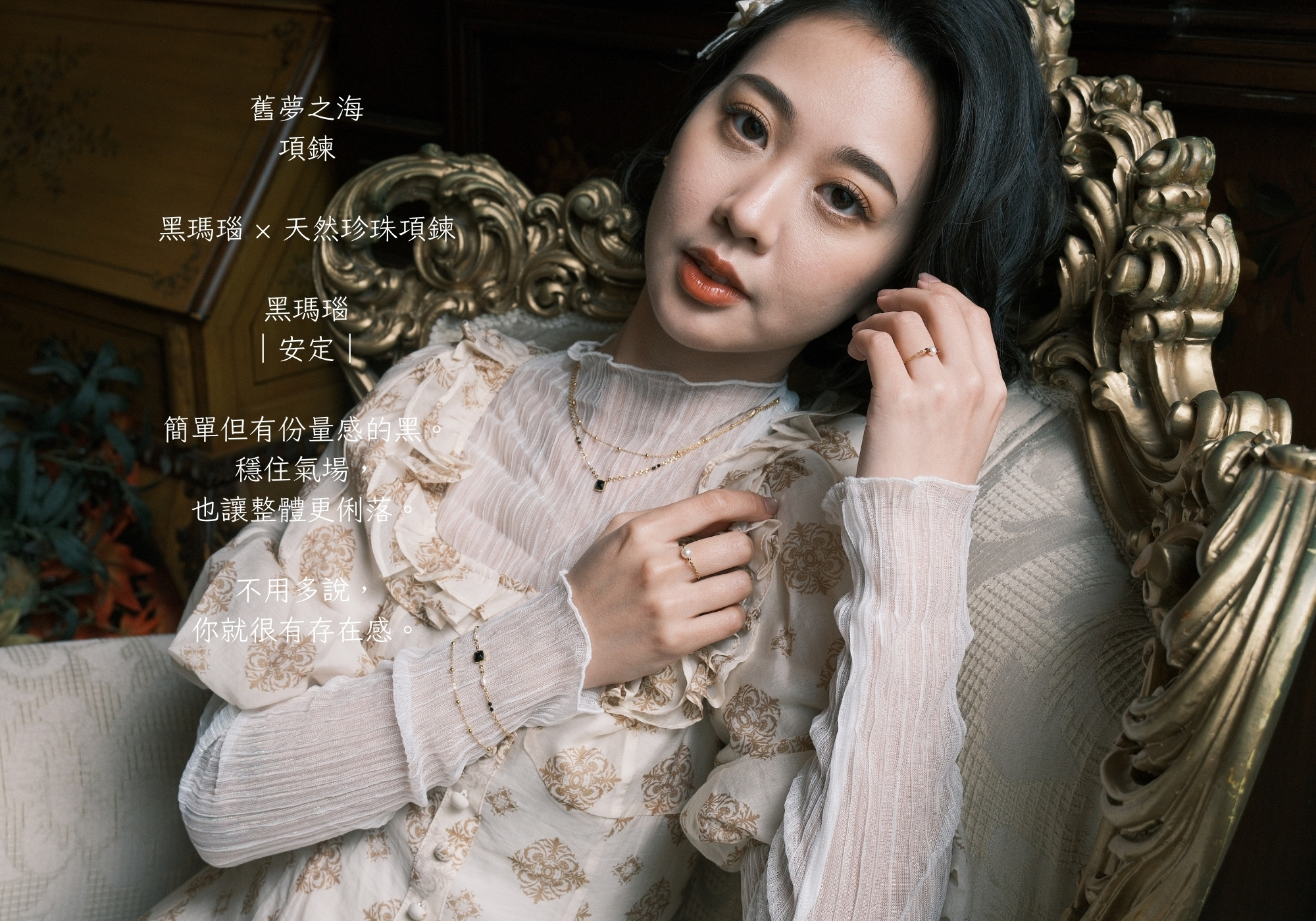 舊夢之海 項鍊 黑瑪瑙 安定 珍珠母貝 溫柔 天然珍珠 鈦鋼項鍊