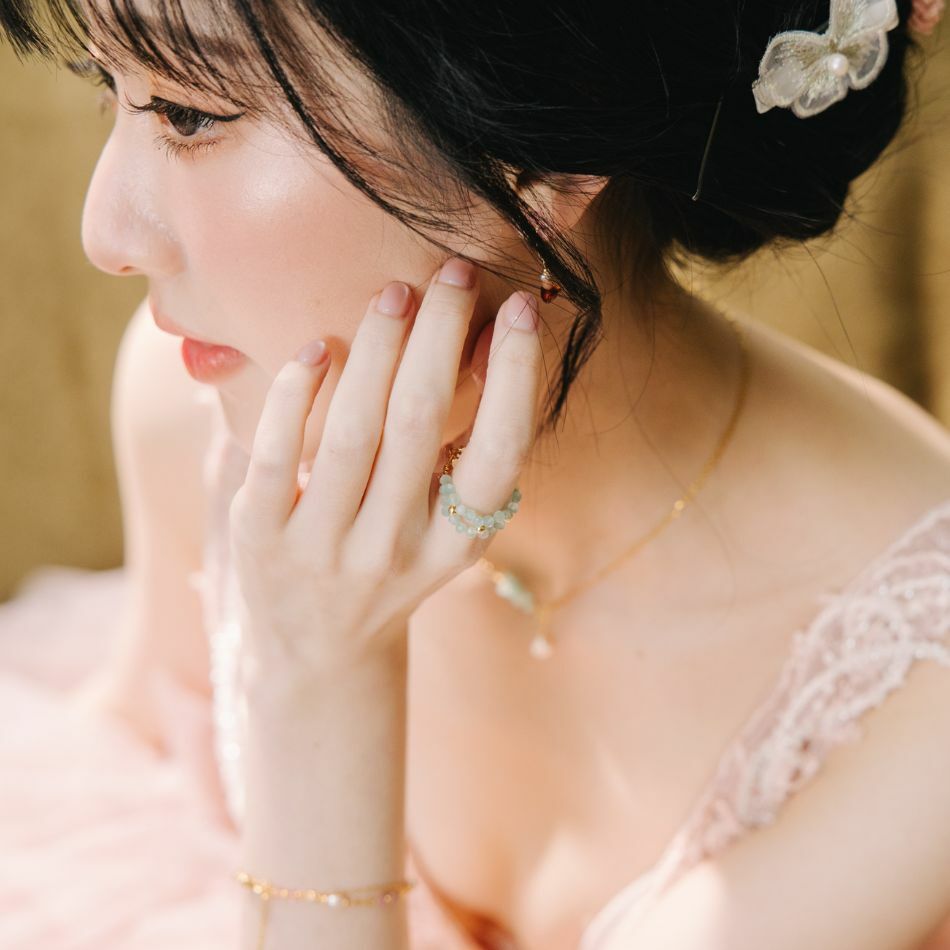 麻花編織戒指 綠貓眼琉璃 手工設計款