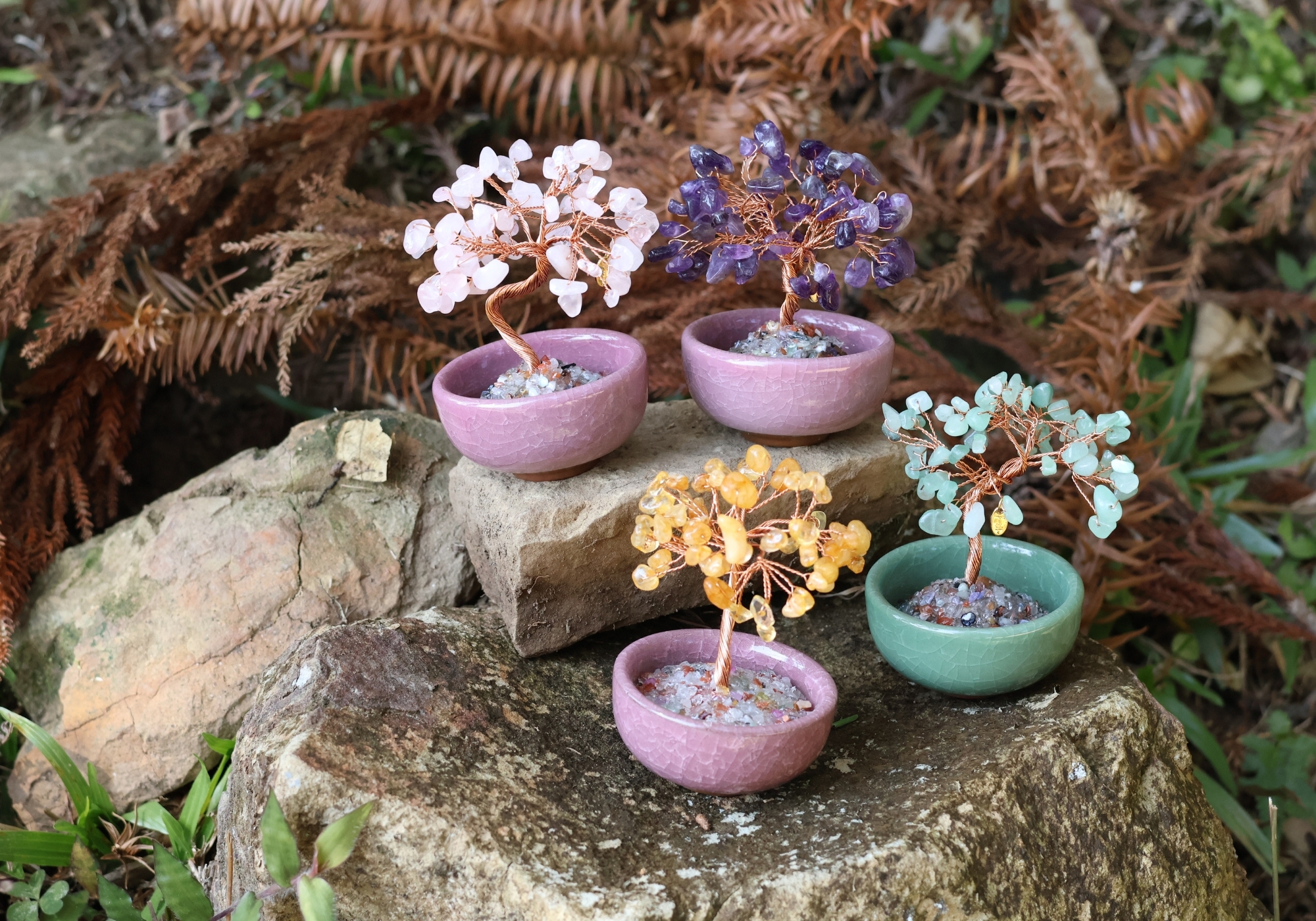絕對加持!水晶能量樹🌳健康綠東陵玉/貴人紫水晶/桃花粉水晶/招財黃水晶