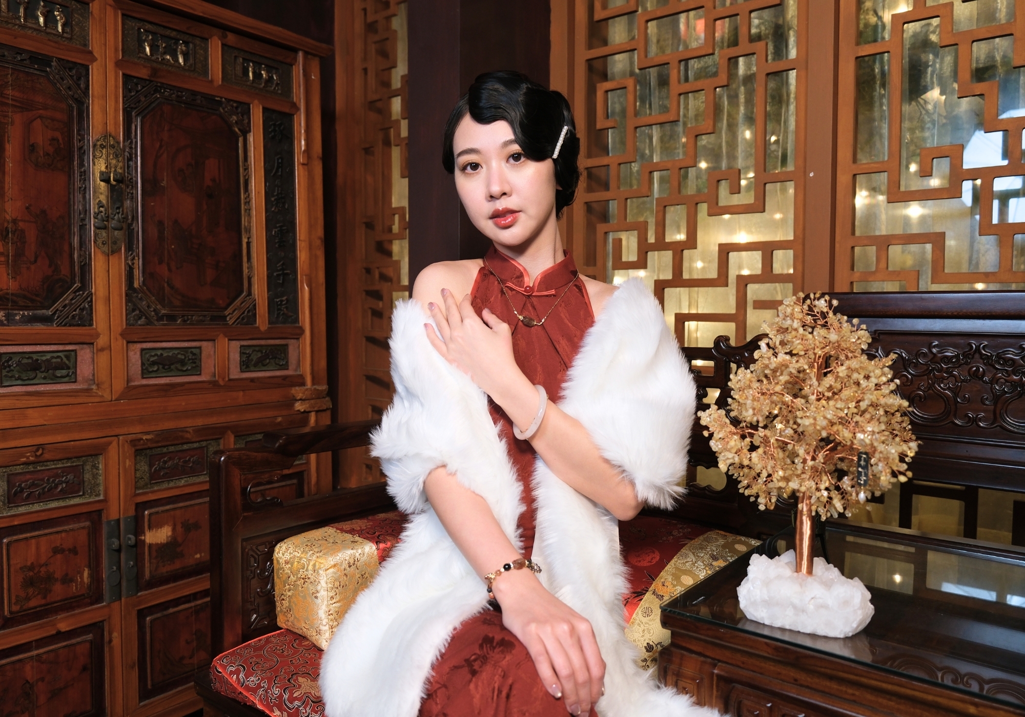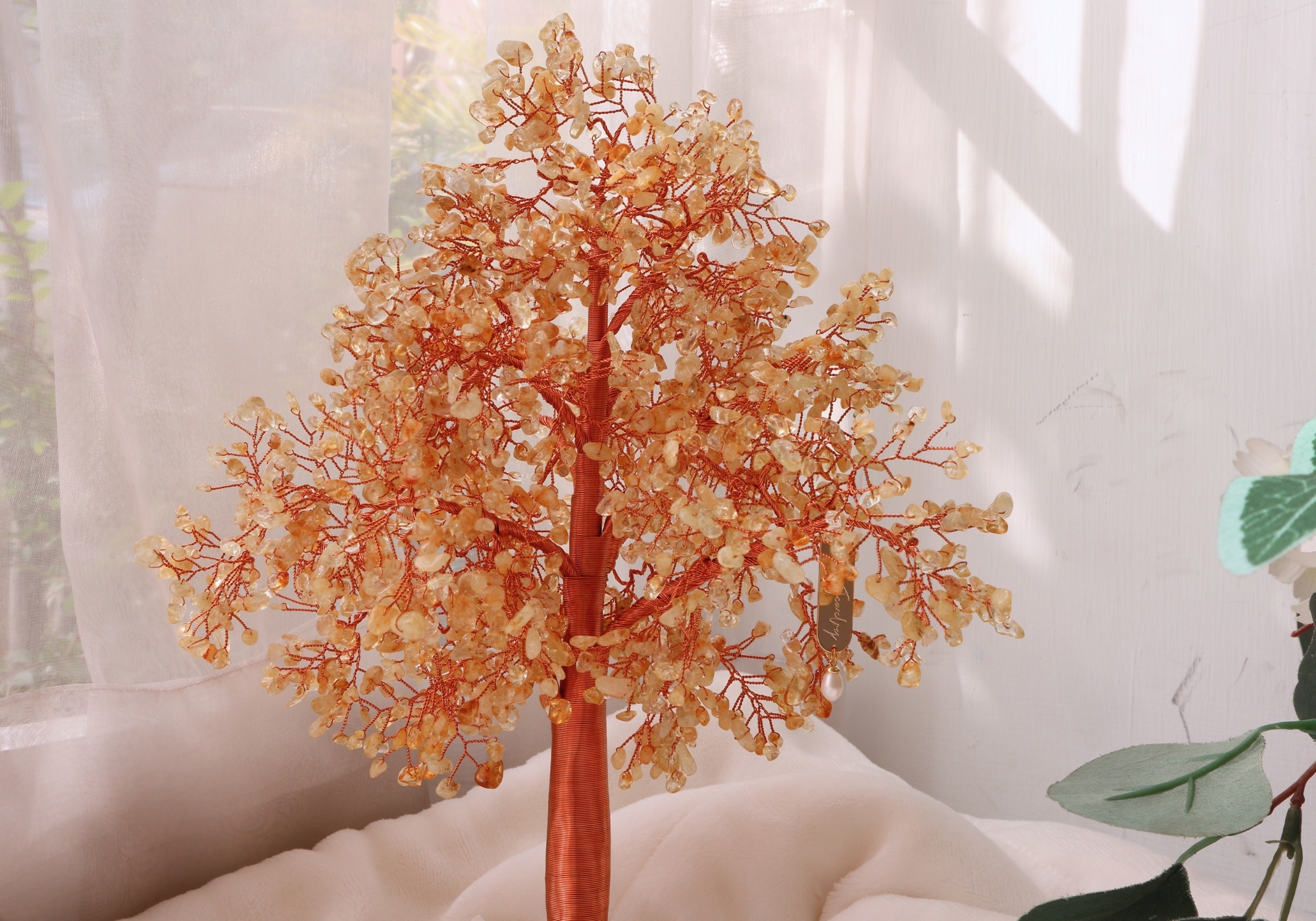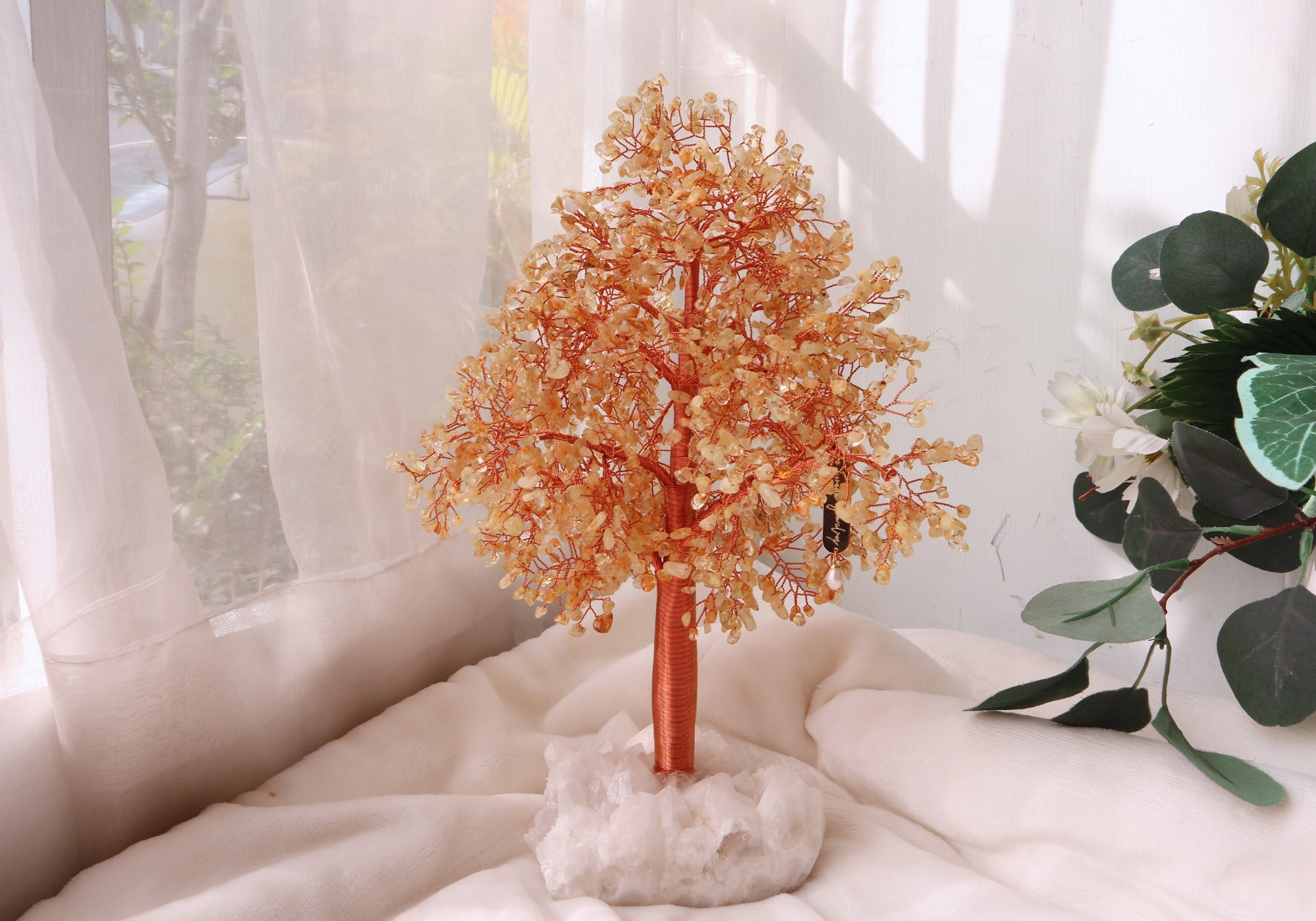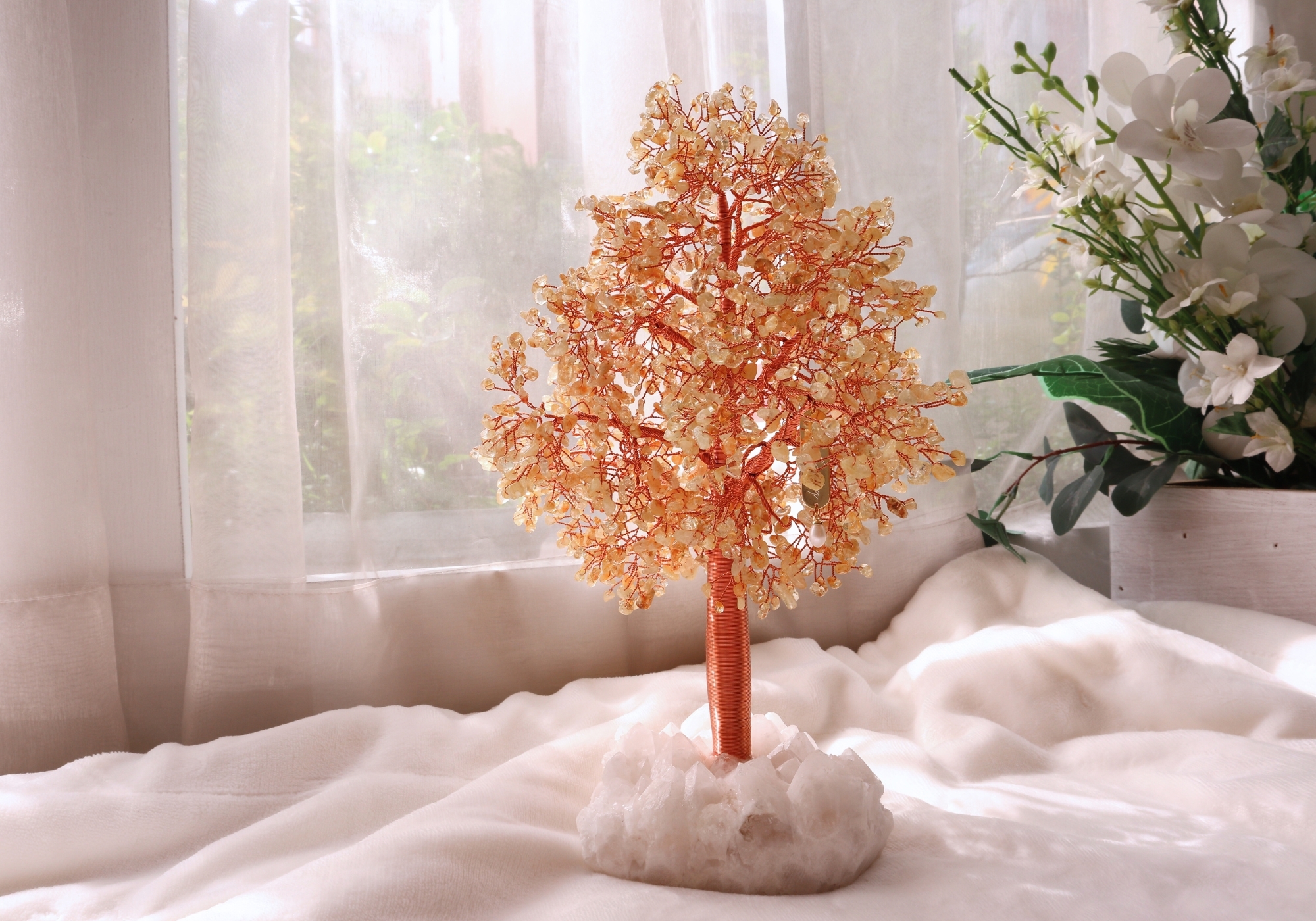 黃水晶樹、白水晶底座
